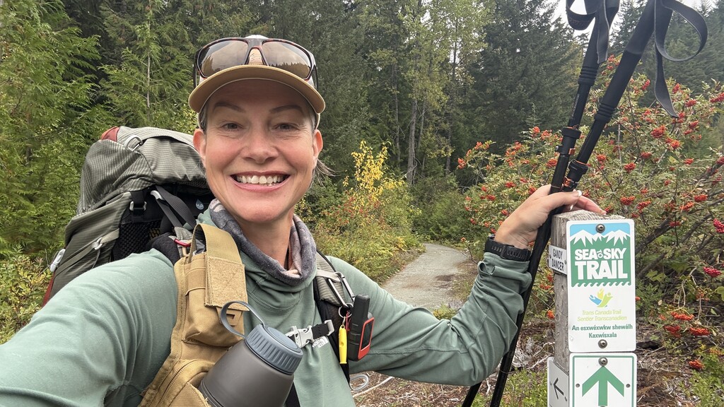 I decided to walk this trail to train for the Camino de Santiago (Portuguese route from Lisbon) as it offers long fairly flat days with a mixture of paved and unpaved trail, plus opportunities to resupply along the way. I parked in Pemberton and took transit to Squamish (public bus to Whistler then ride share to Squamish), staying the night there before starting in the morning. I began walking near the floatplane terminal, and ended at the Village of Pemberton sign.