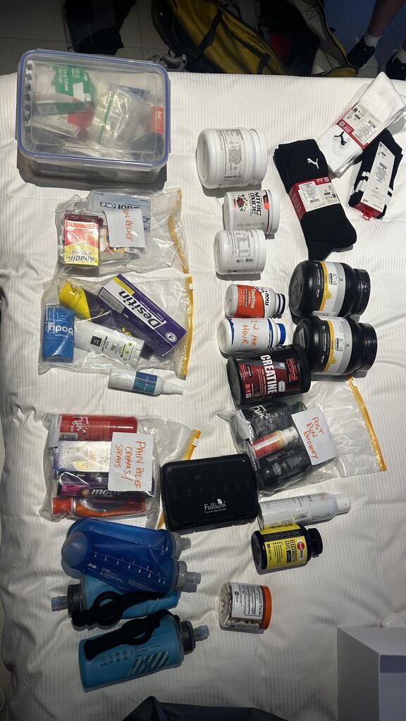 This was a supported run. I received food, beverages, electrolytes, pacing assistance, and vehicle-based safety/logistics. Supplies were not self-carried and were accessed throughout the run. No vehicle was used for forward movement.