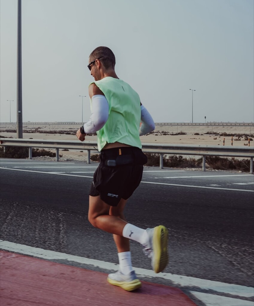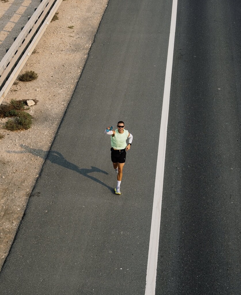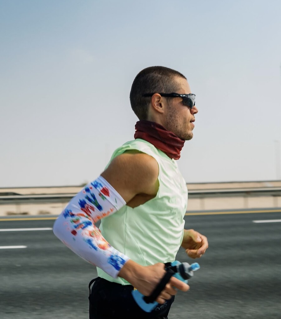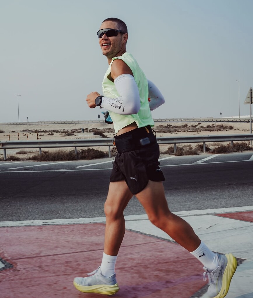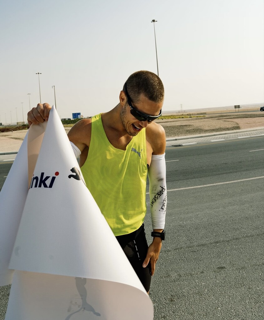 I was fully supported by a crew for safety, pacing rotation, nutrition, hydration, and logistics. In the final 10 kilometers, I was joined and paced by the Salwa Striders, a local running community who accompanied me through to the finish. I was also supported by Ahmed Al-Shahrani who holds the current record for the fastest crossing of Qatar (same route) in a wheelchair.