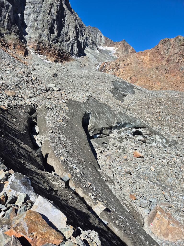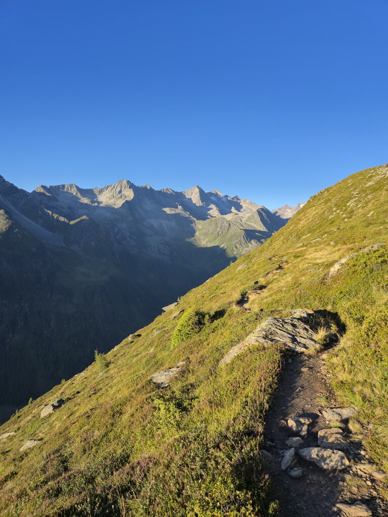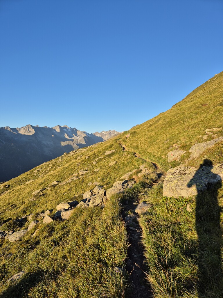 Ein brutal schöner Höhenweg und das Wetter war eigentlich auch perfekt. Nur die Hitze und die pralle Sonne haben nach so vielen Stunden in der ihre Spuren hinterlassen. Hab leider meine Verpflegung nicht gut geplant und musste ab halber Strecke mit meinen Vorräten sparen. Einige Stunden dann nur Wasser getrunken und somit hatte ich ein wenig Probleme mich zu konzentrieren. Bei technischen Gelände bremst das natürlich, obwohl es mir generell gut liegt. Ich wollte den Höhenweg unbedingt unsupportet machen, musste dann bei der Sulzenau-, Nürnberger- und Bremerhütte gegen mich ankämpfen, nicht ein Wiener Schnitzel oder etwas salziges auf der Terrasse zu bestellen. :)