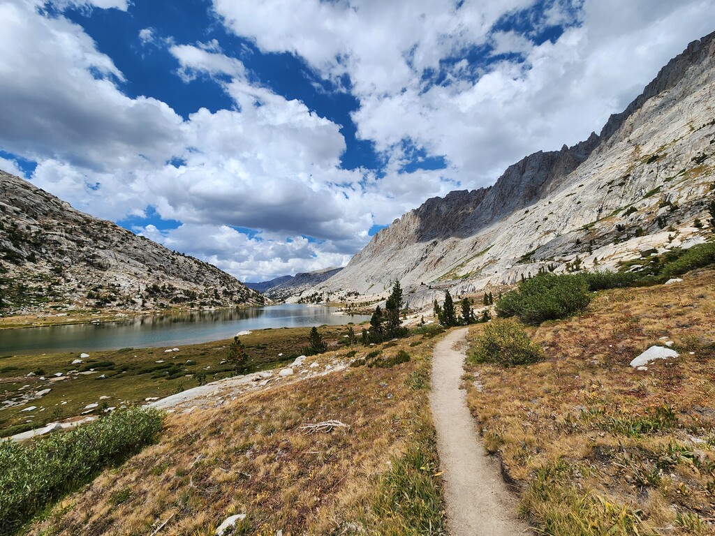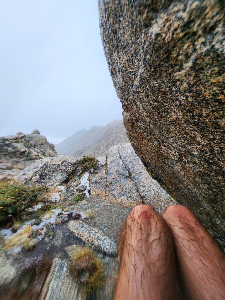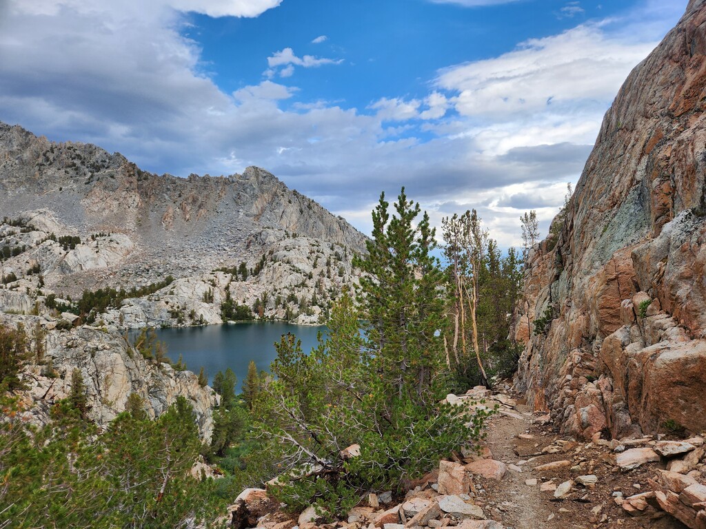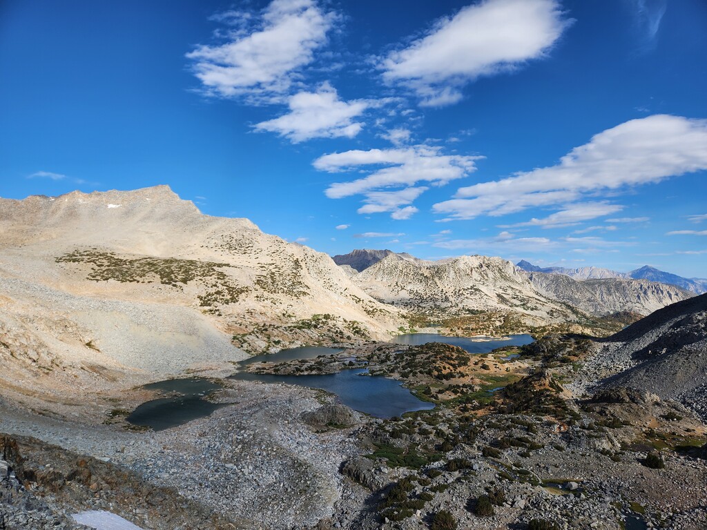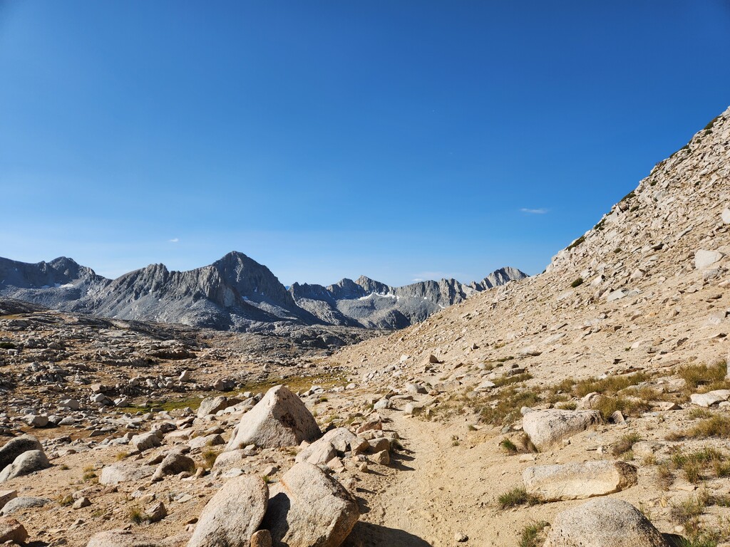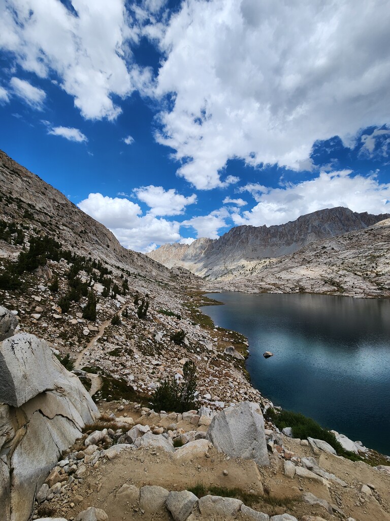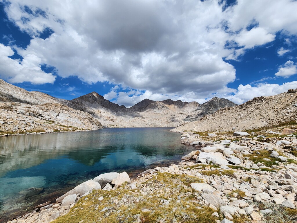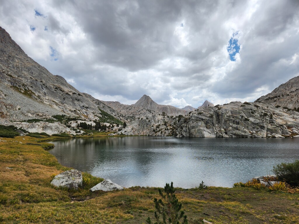 I had an unexpected extra challenge and spice on this day because I was hit by a massive thunderstorm as I made my way through Darwin Bench to Lamarck Col. Hail, flash floods, and lightnight striking the surrounding peaks and the Col itself...eeek. I ended up finding refuge under a tree and later a rock to wait it out. Luckily, it passed west and let me over the now hail laden Lamarck Col.