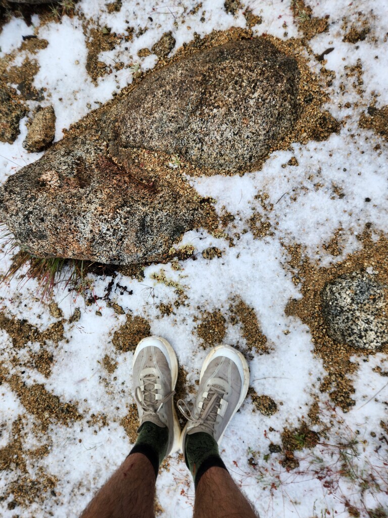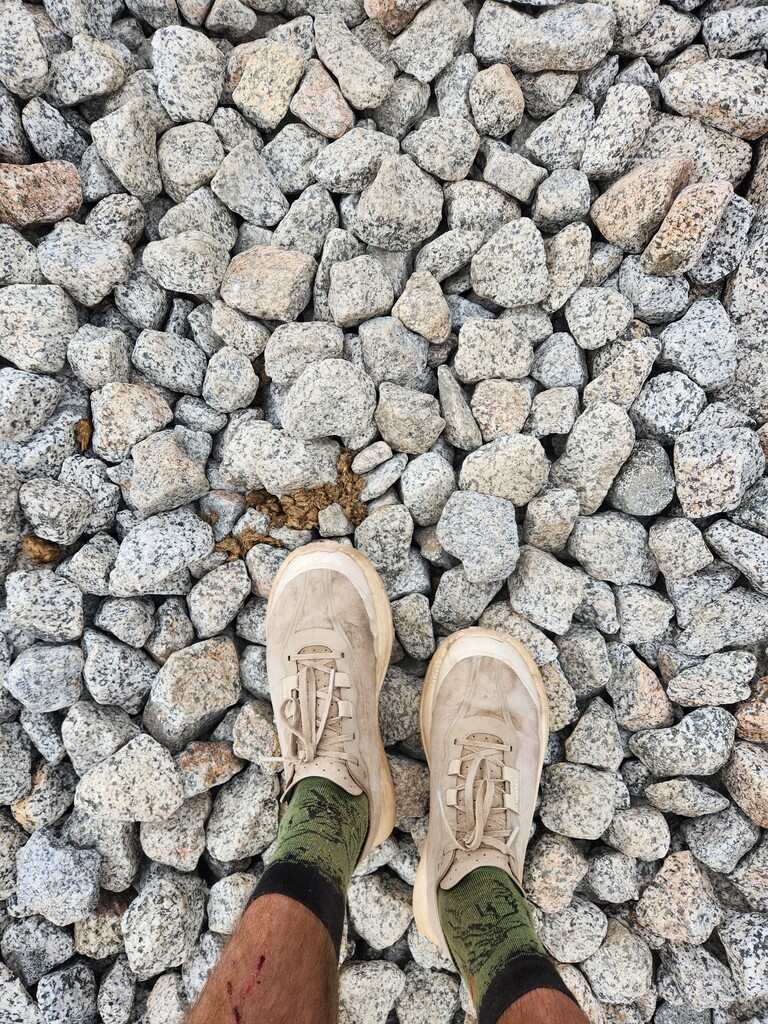 For the first 3.5 hours I ate 30-40g carbs every 20 minutes consistently, then I started feeling a bit nauseous coming up Laconte Canyon towards Muir pass and switched to eating every 30 minutes (not always successfully). I ended up eating ~18 snacks for a total of ~650g carbs, not as much as I had planned. I honestly lost track of water fillups, but I’d guess I filled the 500ml flask 11 times for a total of 5.5L.