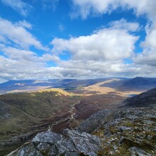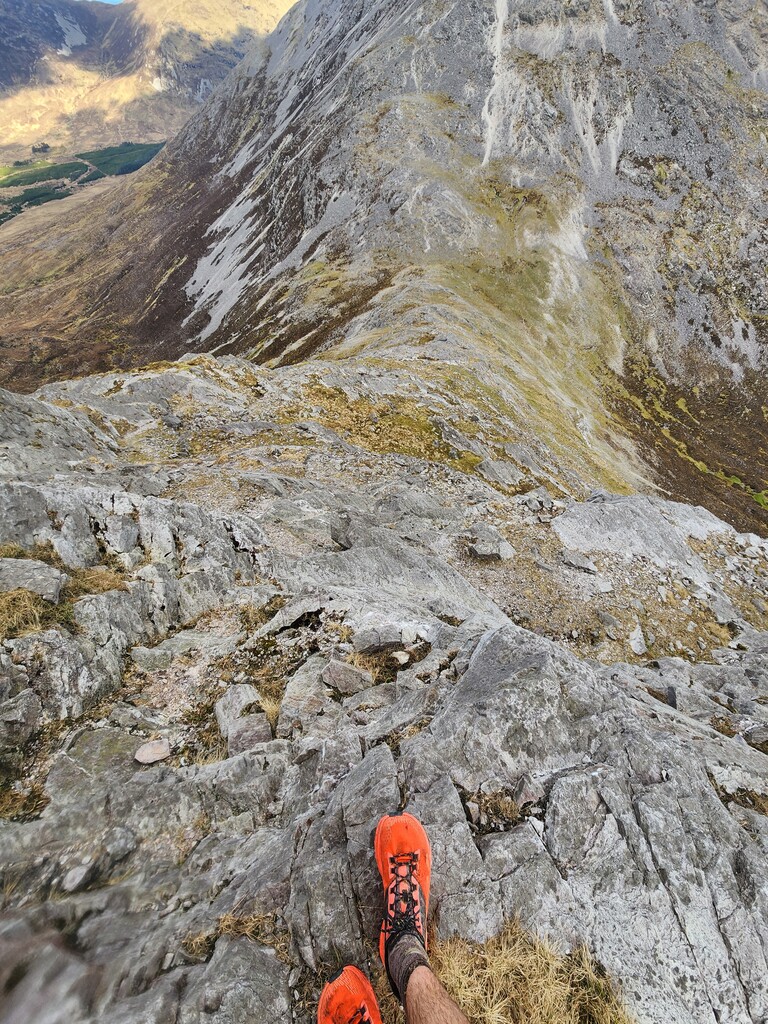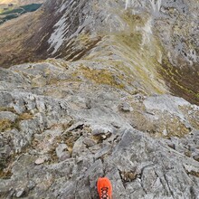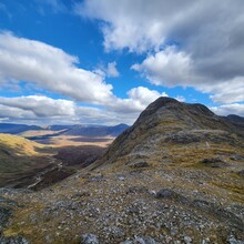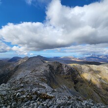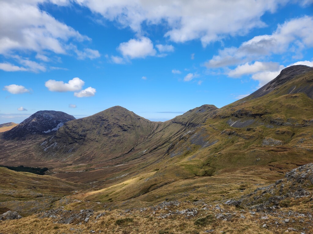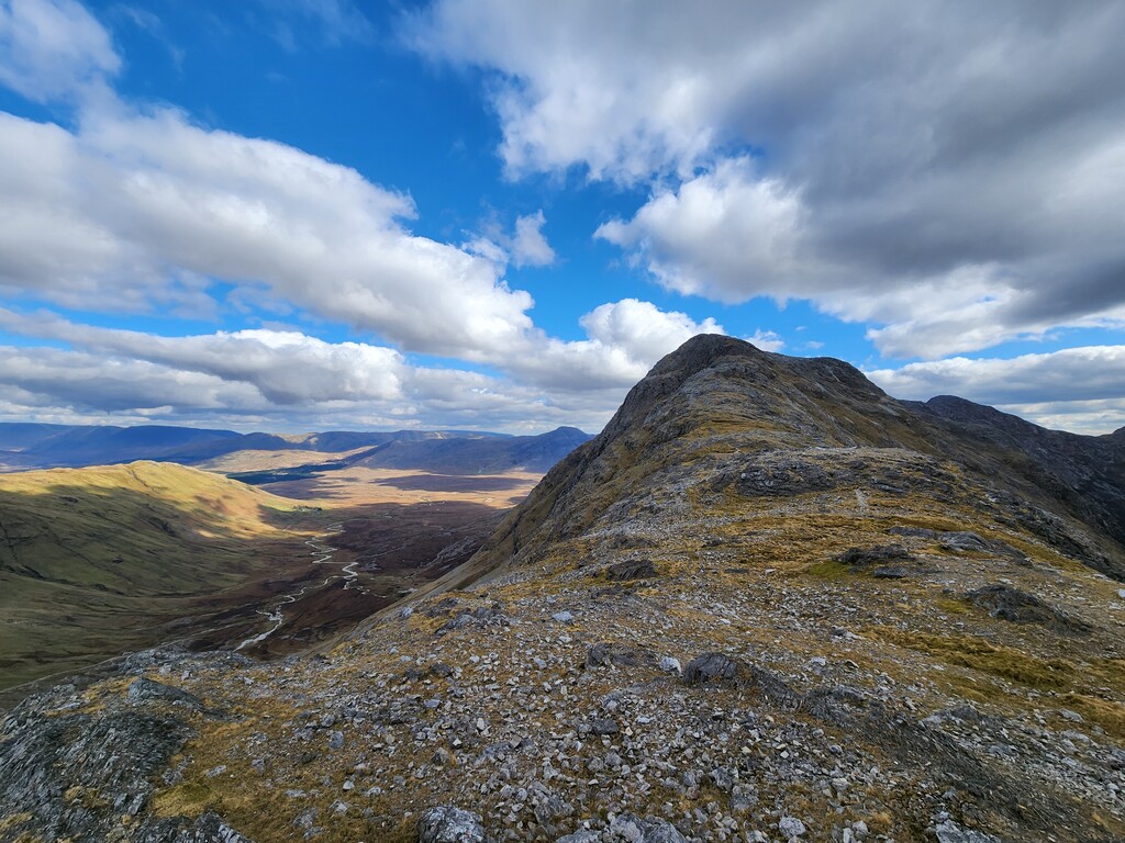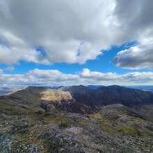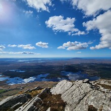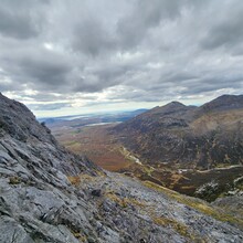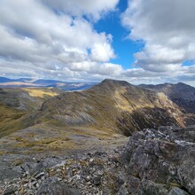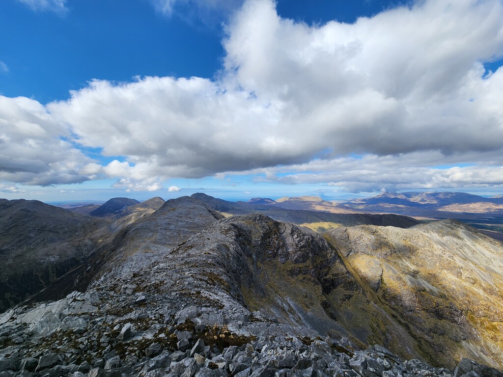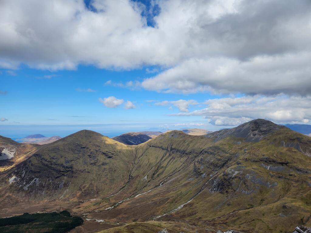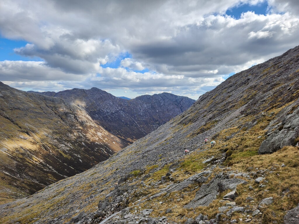 Amazing route! Rugged and almost all offtrail it has unrelenting vert that starts right away and doesn't let up. Right out the gate it heads straight up to Benlettery peak from the hostel, rising nearly 2,000 feet in 1.3 miles, to gain the long ridge. I stayed atop the ridgeline all the way around to Derryclare hitting all the high points along the way, including Benbreen, Benbreen central, Benbreen north, Bencollaghduff, Bencorr and many subpeaks. Not a lot of efficiently runnable sections were found due to the steep ups and downs; the route rinding; and the combination of uneven rock, thick grass and bog. A few highlights were the numerous rocky scrambling sections (my favorite was the consistent blocky quartzite steeps coming up Bencorr), a small heard of sheep way up high on Benbreen north, and of course the incredible views in both direction from the ridgeline. I was also really lucky to do this route on a sunny, calm day which is rare for March.