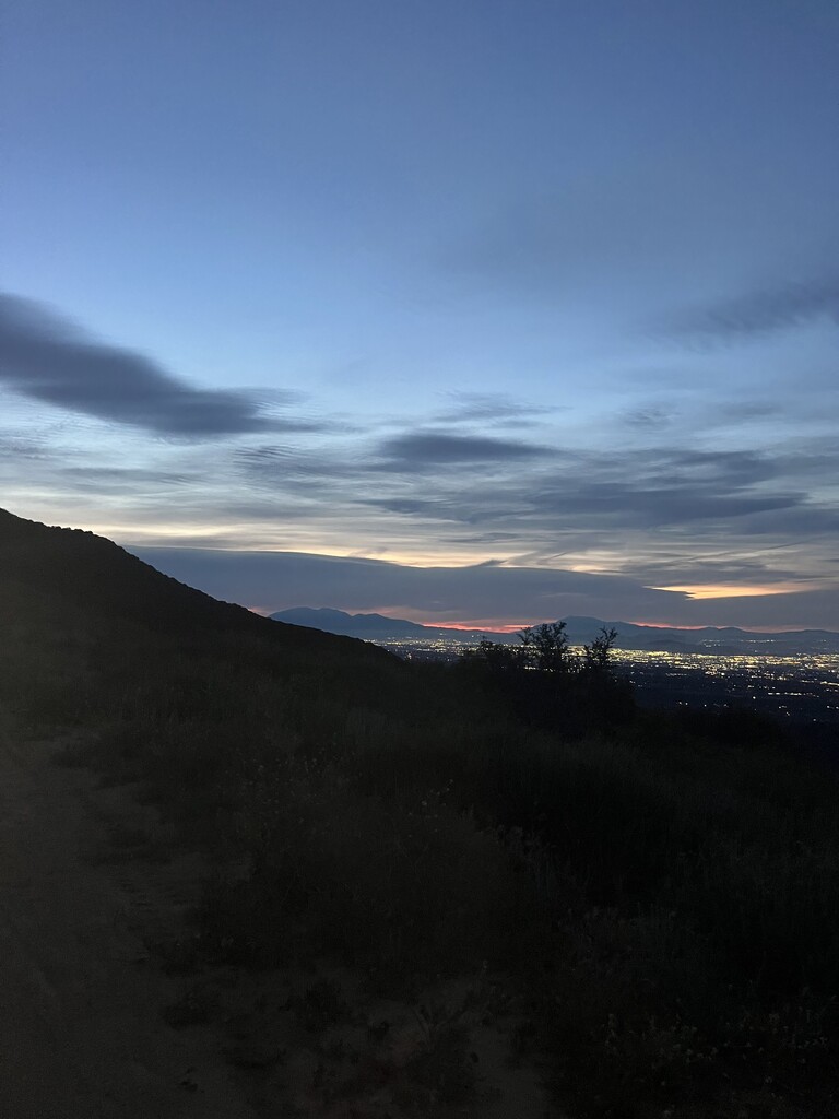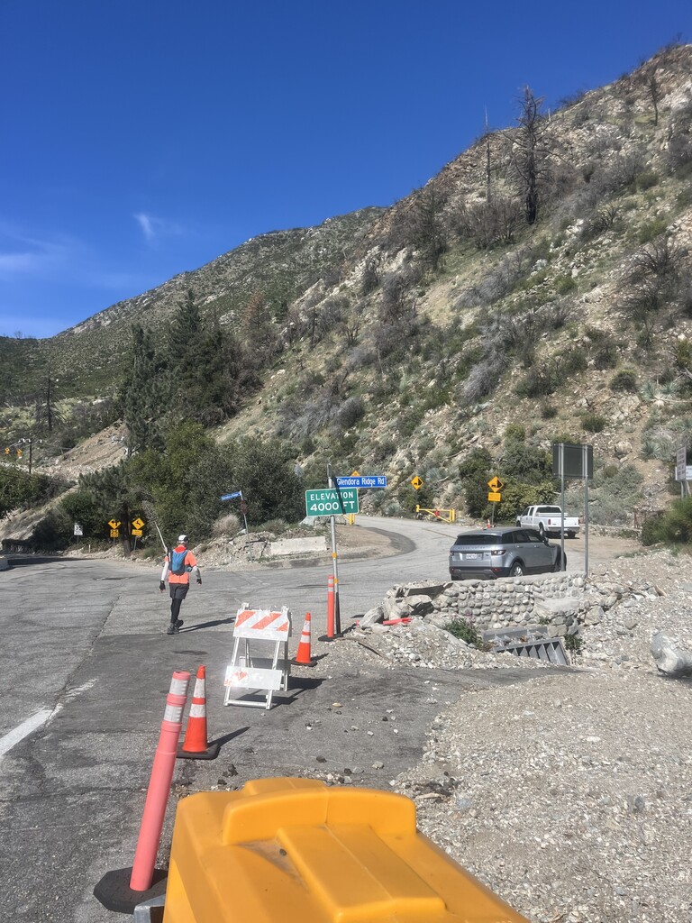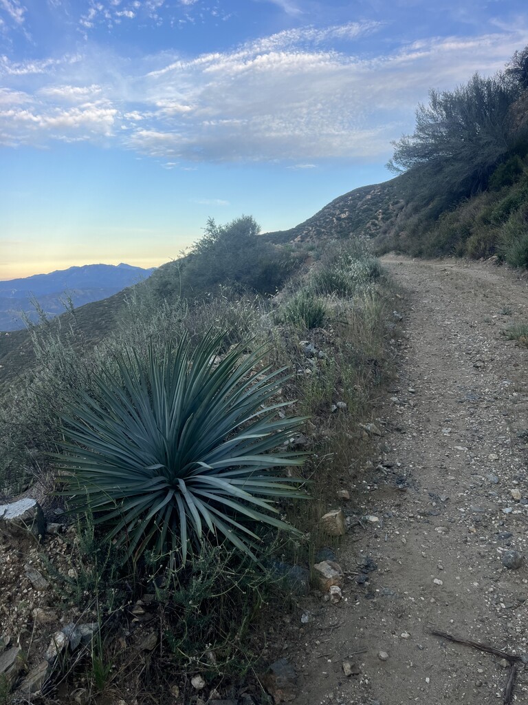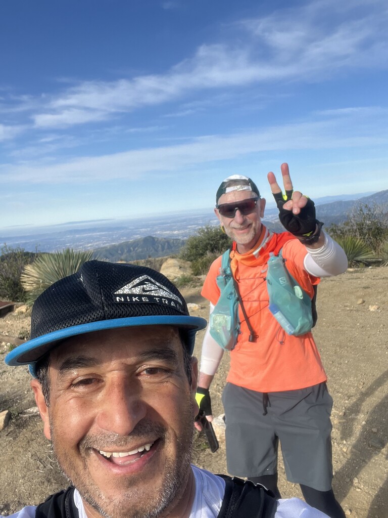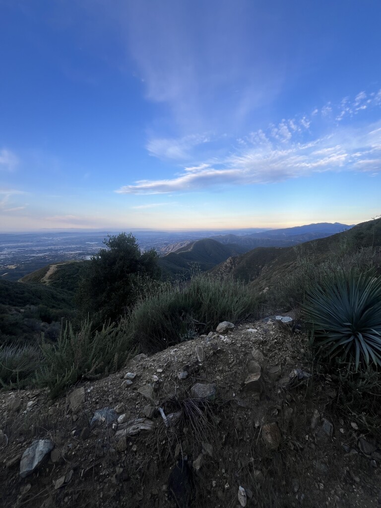 Started just after 5am at the trailhead in front of the San Dimas Dam with Claude. The first quarter mile was overgrown and the trail was eroded. Then the trail/dirt road was maintained the rest of the way. The trail climbed for 3 1/2 miles . From there it gradually inclined till mile 6 1/2 then it climbed again till mile 9 at the Sunset towers. Then some good running for 4 miles to Sunset Peak. Great open views of the surrounding mountains at the top. Then a long downhill run till mile 17 at Mt.Baldy Village at the visitor center. They had clean bathrooms and had water behind the bathroom. We took a break here and refilled our water supply before heading back. On the way back we didn’t do the out and back section of Sunset Peak . It got hot on the last 10 miles due to no tree cover. It was a nice tough challenge . The end