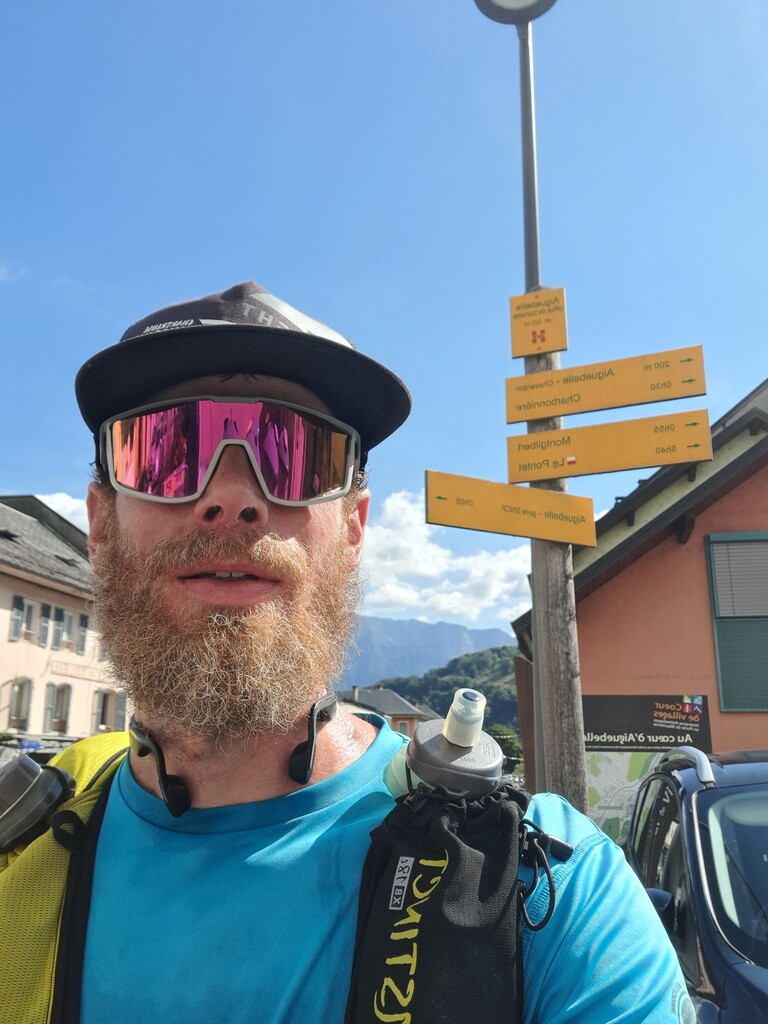 Start at 08:00 AM with a 6.9 kg backpack containing more than 3 kg of food and 1.5 L of water. Wear usual trail running clothes (rain jacket and rain pants), along with a bivy bag and a puffy jacket. I stopped for 1 hour and 30 minutes during the night in a hut, and took two power naps on the second day.