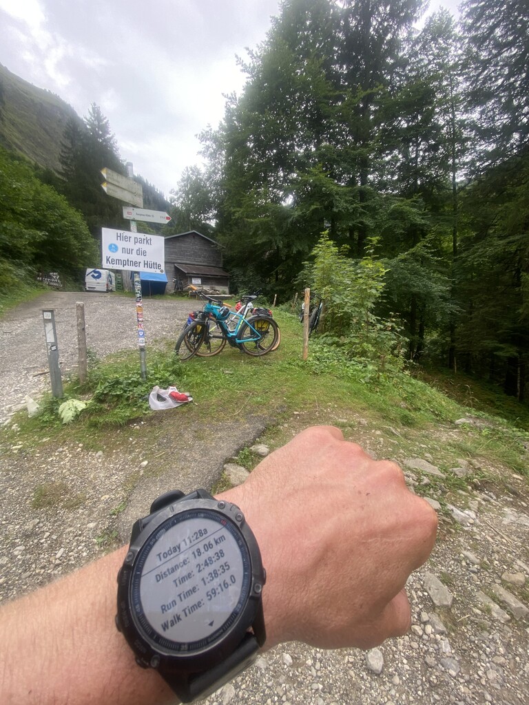Mein erstes Mal auf dem Krottenkopf, sehr geile Strecke, muss man echt nochmal in etwas entspannter machen. Die Strecke war technischer als gedacht. Gerade im ersten Teil und in der Schlucht waren die Trails sehr rutschig, nass, teilweise mit Querungen kleiner Bäche. Im Umfeld der Kemptener Hütte und bis zum Mädelejoch waren die Trails sehr flowig und einfach. Danach wird es felsiger, schuttiger und steiler, am Ende gen Gipfel dann auch etwas ausgesetzter und ein klein wenig kraxlig. Aufstieg lief gut, musste erst reinkommen, aber kam dann gut in den Flow. Habe es mir ganz gut eingeteilt denke ich, am Gipfel aus Safetygründen etwas lockerer gemacht. Downhill lief auch gut, am Ende habe ich gemerkt, dass es knapp werden könnte und dann die letzten 3 km nochmal angezogen, was bei den rutschigen Bedingungen grenzwertig war. Am Ende dann noch deswegen umgeknickt aber zum Glück kein Sturz.