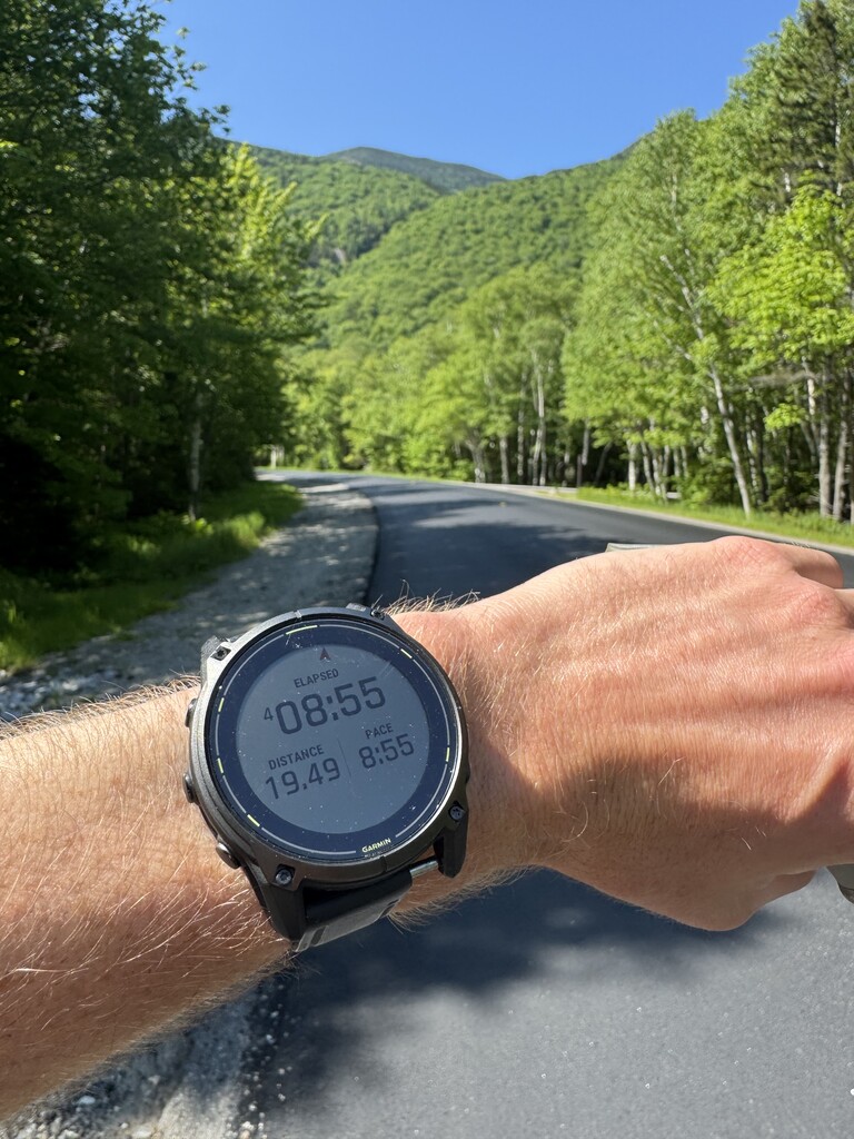 Starting at the southern trailhead at 5:49am I went counterclockwise (same direction as last year), doing the longer side of the loop first. It was a cool morning, staying under 65 degrees for most of the effort but topical cooling was of huge benefit and I got wet in the many streams at least every 1.5hrs. There is more water access on the east side of the loop but for the whole route I was able to do 650ml per hour and easily filter as needed - the driest stretch is up and over Old Speck, with streams on either side. After being greeted by a Spruce Grouse on Puzzle Mountain, I tried to run almost every step of the east side of the loop (last year I hiked too much and I think using poles slowed me down) and my effort/time was looking good, hitting the Bear River Road crossing at the base of Old Speck at 4:09 elapsed (16 minutes ahead of last year). I hit a low as soon as I started climbing Old Speck; thankfully wasn't cramping like last year but my legs just felt heavy and weak and I wasn't able to push as quickly up this climb as I had hoped. This is probably the area with the most room for improvement on time. There were a fair number of blow downs on the descent of Old Speck, which was totally clear last year, thanks to the trail work by current women's record holder Deanna Doane. It was also pretty thick and hard to navigate in places on the east side (this trail needs more love!), all of this cost me a few minutes but otherwise I'm stoked on how my legs felt on flats and descents and I moved super efficiently. I was a bit sluggish on the Sunday River Whitecap climb and apparently lost one of my nutrition sachets somewhere and had a nauseating palate response to my Precision gels; didn't want to risk throwing up so went without calories to the finish - had been averaging 105g CHO/hr for ~6 hours. Could smell the barn at this point and sent it to the finish.