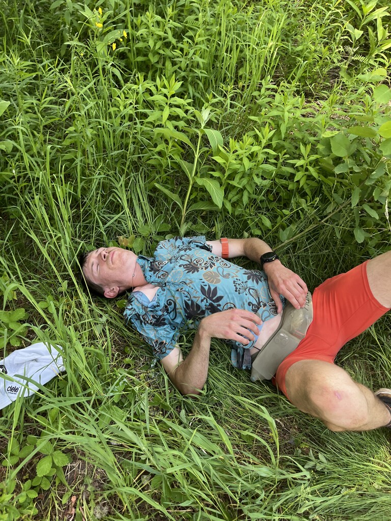 Tried going more minimal with gear this year (worked great), just a Naked belt with two 650ml handhelds, filtering water with a 1L Katadyn - Carbs Fuel, Tailwind High Carb, and Naak Ultra Energy sachets + Precision gels. La Sportiva Prodigio Pros were a nice shoe choice for this. Nearly had a few bad falls; kept telling myself to maximize where I was and stay controlled... this terrain is so hard to move quickly through.
