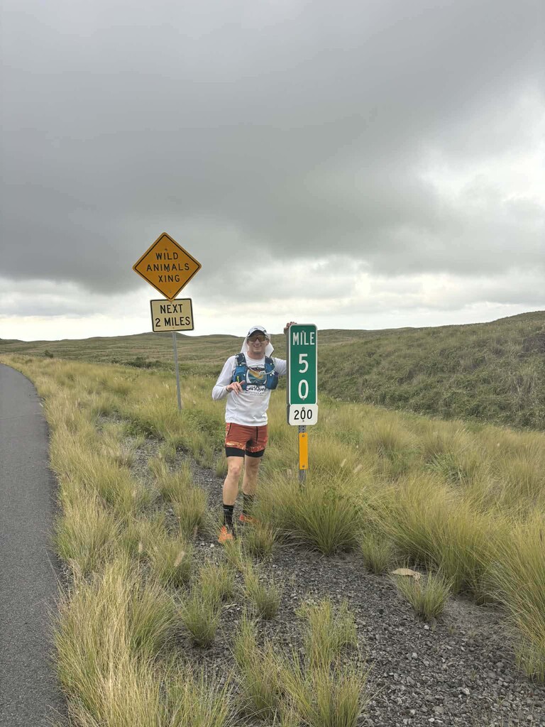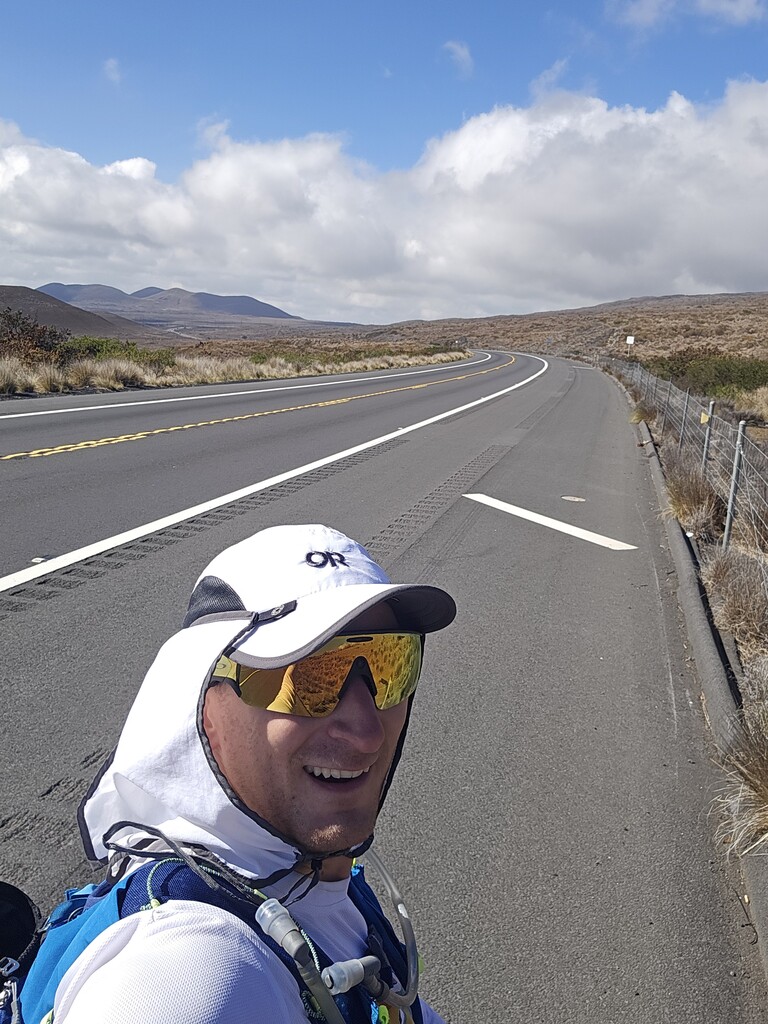 Started around 2:30 am to try and beat the sun at elevation. Long sleeves were a must because from sunup to sundown you are running around 2000'. There was no place to refuel on the route, so my wife was my sherpa and brought me everything I needed at the stops along the way. My primary fuel source was my custom Infinit blend, but also mixed in Cokes, coconut water, sandwiches, and some breakfast burritos for good measure. Also polished off a box of Samoas. One important correction: the route is 78 miles, not 78 kilometers.