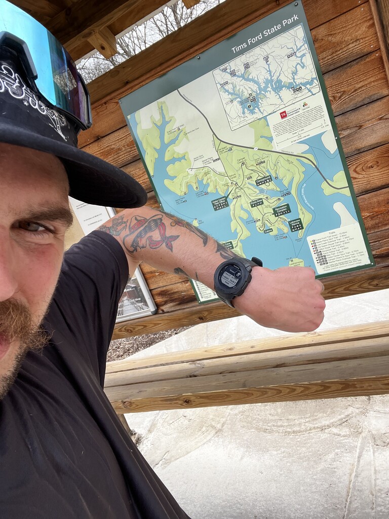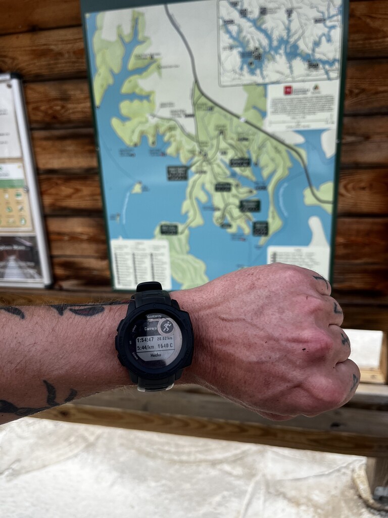 Found this local loop on the FKT maps and thought it'd be fun. It was! trail mostly well-marked—got slightly off-track a couple times but found my way back onto the trail. a slightly different trail from about kilometer 2-3.2 (thought the original track stayed right beside the lake), but the actual route from Will's original track is a shorter, slightly more direct one, so added about half, 0.5-1 km, probably. Lots of leaves on the track made it a bit hard to see at times, and some downed branches, but mostly just a flowy, fun, fun, fun trail. Little gem of a spot! Would never have visited the park if I hadn't seen this route. rad.
