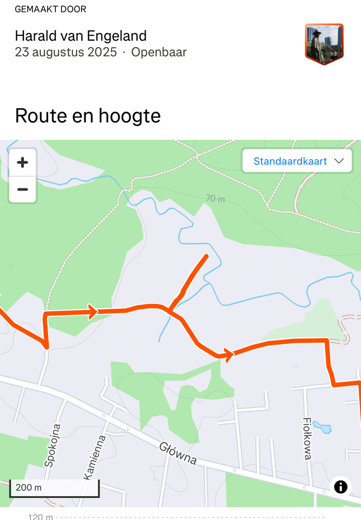 I had to 2 small detours: 1) near the palace of Rogalin, the gate was closed and I had to walk around it. Since I wanted to see the Palace I did do a tour around the garden. 2) after 37k there was not obvious path to see, and I could not continue, had to go back to the main road and was able to follow the normal course again after 39.5 km.