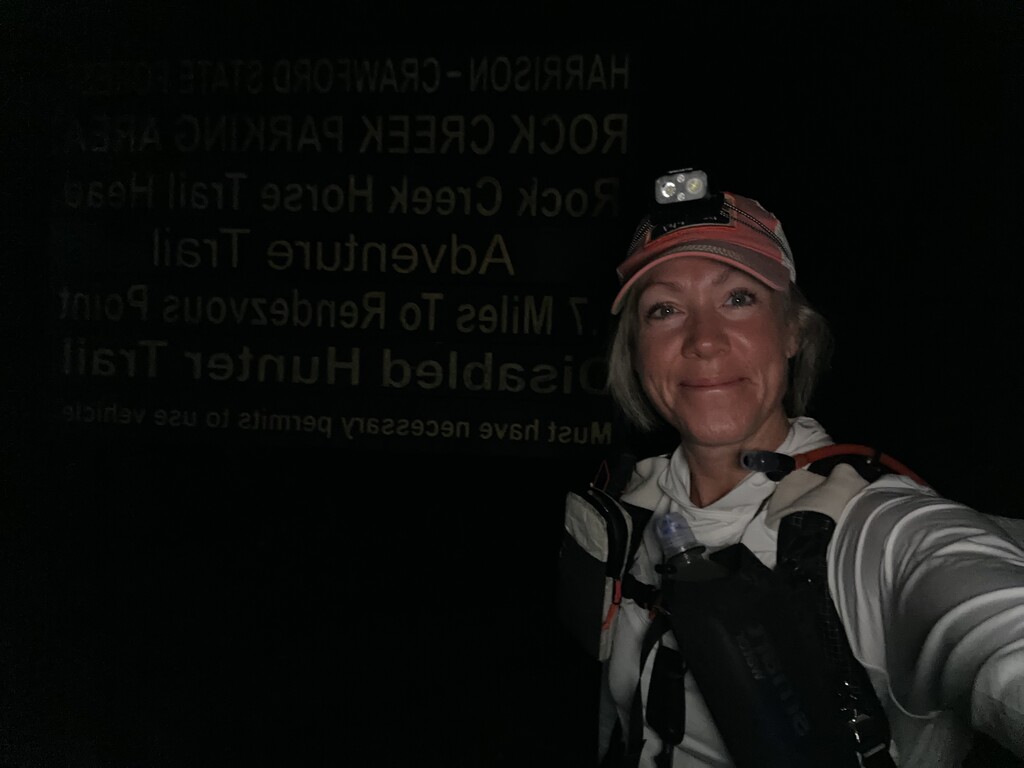 My friend (who did not want to be recorded for the FKT) and I started just after 3:11am on Saturday October 4th. We each carried our own supplies. We started at the Old Barn Shelter Parking Lot just off hwy 462. This is the tip of the stick from the lollipop for this route. This adds to the distance of the route by quite a bit so I am unclear if that is technically part of the requirement for this FKT route. But I have photos with timestamps of the start of the route, where I hit the actual loop, where i came back to the loop for the second, where the 2 loops ended and then the final end to again the tip of the lollipop stick.