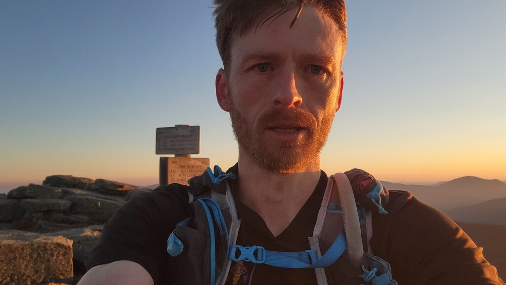 I started out from Lincoln Woods at 3:46 AM Friday morning with enough fuel in my pack for one whole loop and just enough fluids to get me to Galehead Hut. This turned out perfect with my last sip of water about 2 miles out from the Hut. Lap one was absolutely stunning with the early start getting me up on the ridge in time for the full sunrise experience starting with the early pre-dawn glow. I was able to pace well off Bondcliff and finish lap 1 in 8:52, which was somewhat above my goal of 8:00.
