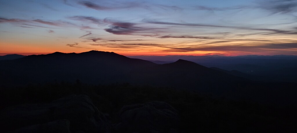 Lap 2 was of course, much harder. I had taken the same amount of fluids and a bit more fuel for the second lap, but on the climb up Flume I realized that was a mistake. The mid-day warmth had me sweating so much more, so I had to ration my fluids out to Galehead. After surviving the chunky & miserable Garfield ridge, I wanted to just call it and crash at Galehead hut. The staff were doing the evening skit when I got there and their food smelled amazing. I asked for some, but leftovers would not be ready for at least 30 mins. I filled my water and headed out into the evening glow. The South Twin climb was mentally daunting--knowing I still had 14 miles ahead. After I descended off South Twin into darkness, moonrise is late so it was quite dark. Wary of the legendary Pemi bear, I tried to make loud human noises any time I heard things in the woods. One of those times a large rabbit emerged! I also stupidly forgot extra batteries for my headlamp, so I ran it on lower power to be sure of getting to the finish. By Bondcliff everything was coming together. I had pain in a lot of places, but not so much that I couldn't get the pace back to a reasonable place for the smooth run down from there and out. Back at Lincoln woods at 11:23 PM.