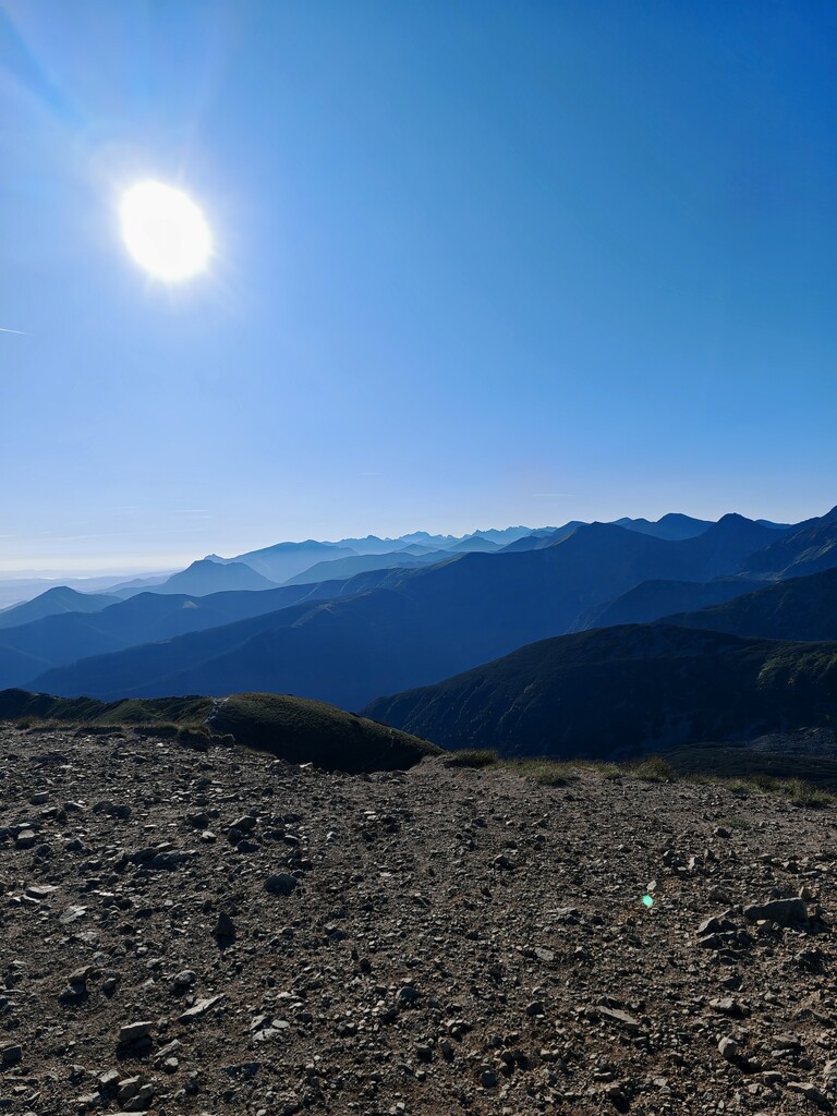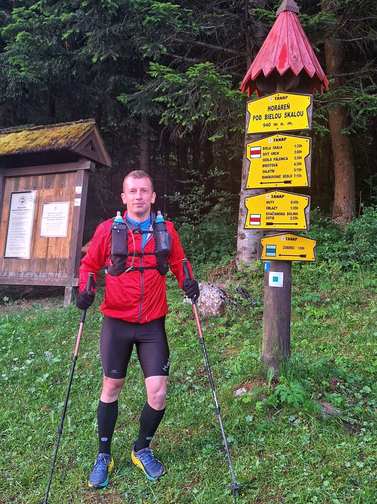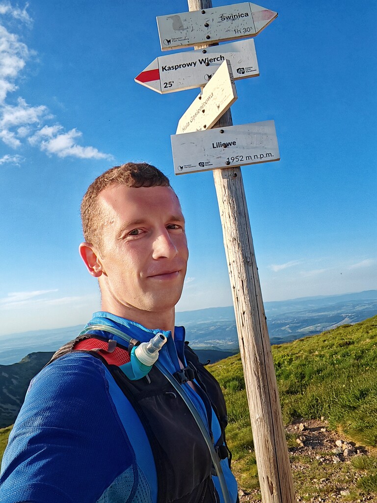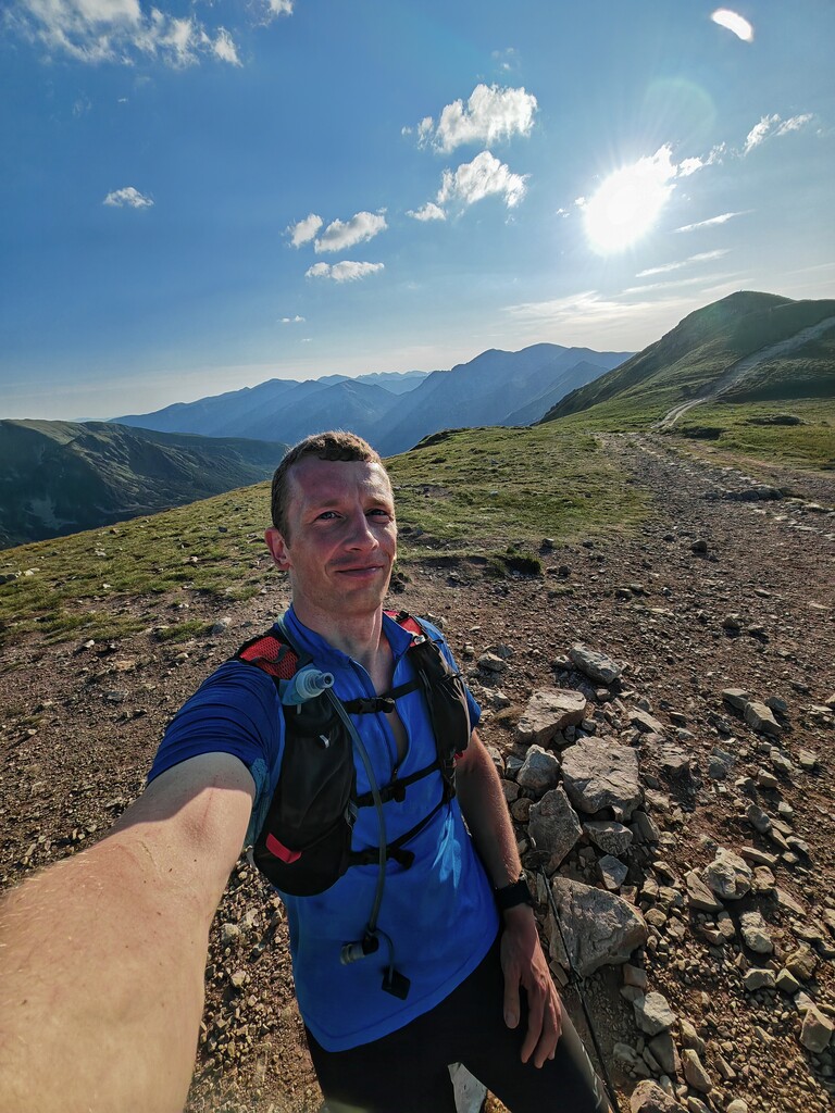 Samotny bieg z supportem w postaci depozytu wody na Błyszczu. Wydaje się to najrozsądniejszym kompromisem pomiędzy stylem, a zdrowym rozsądkiem, bo jedyna woda na grani to stawki ze śniegu w postaci brudnych jeziorek pod Pyszniańską Przełęczą.