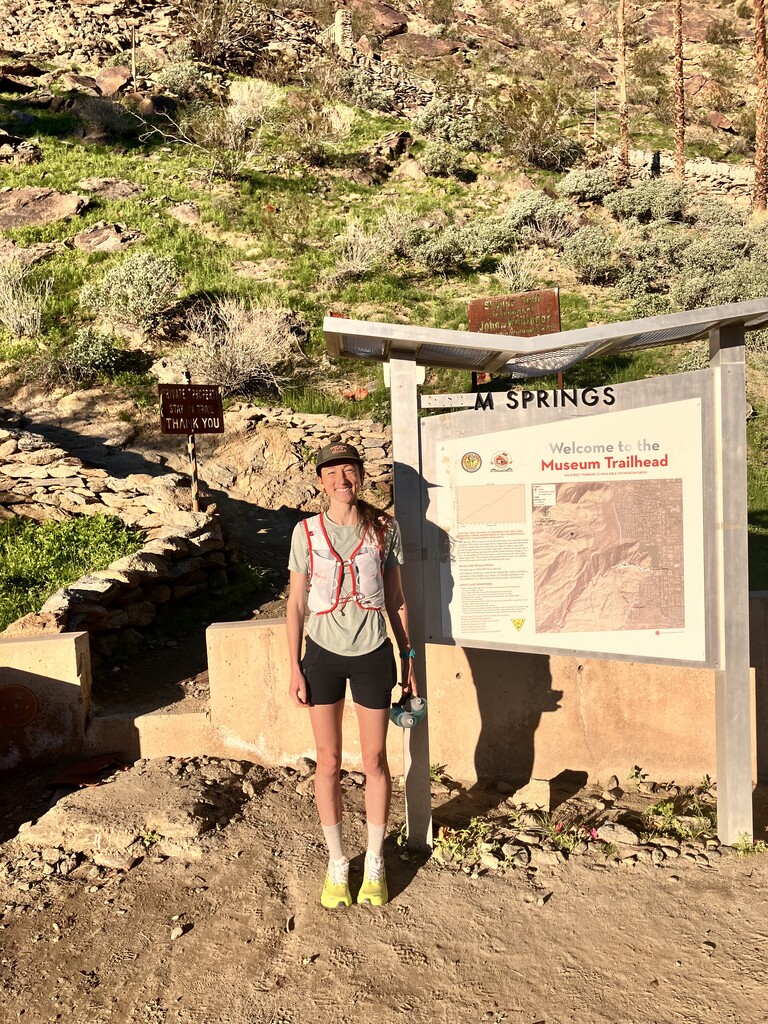 I've long wanted to come back and try for my 2020 time and planned to do it at some point. I'm in Palm Springs for a few weeks and after receiving notification that Helen took the FKT two days ago, this past Thursday, and knowing there was a great weather window, I decided to finally go for it! I started at 8:02am. It was in the mid-50s and sunny. There were many people on the trail—maybe thirty people total spread out throughout the route, between both hikers and other runners. My husband also ran this route, but slower and ten minutes or so behind me. It was a bit gusty at some points but not bad and I found I didn't have to put on my jacket, though I did put on my gloves for the final 2 miles. I brought 1L a water/electrolutes and a bunch of gels. Very happy to beat my old time my 10+ minutes and it was motivating to have Helen's time to chase out there today!