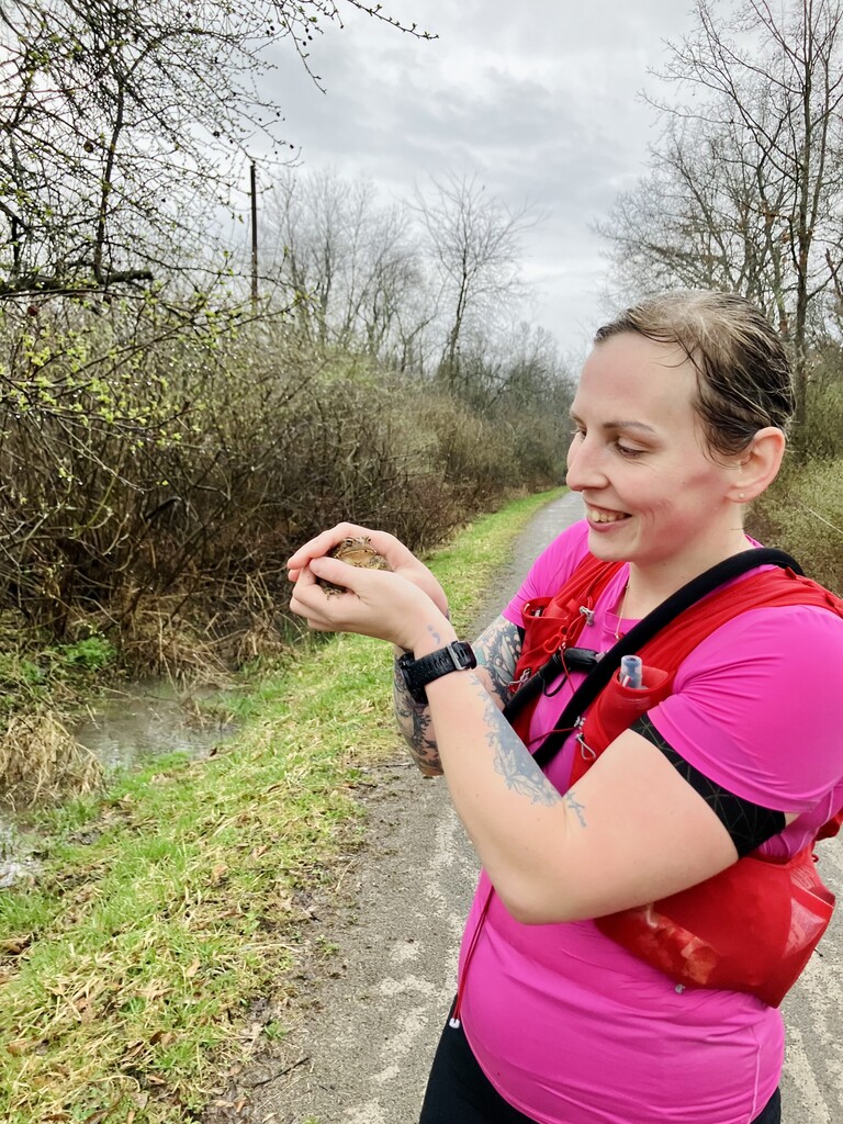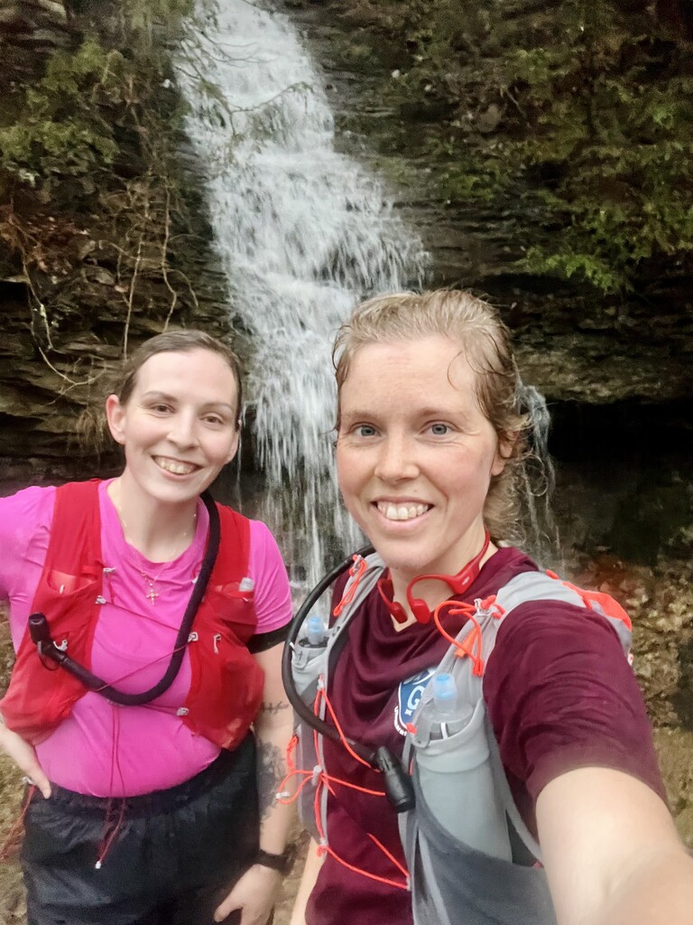 In true Jamie and Myah fashion, no ultra is complete without a storm. With a forecast calling for morning thunderstorms, 20 mph winds, and all-day rain, nature did not disappoint. The day kicked off with lightning, then settled into a steady downpour—creating dramatic mist, roaring waterfalls, and high currents along Buffalo Creek. The trail was soaked, the skies were dark, and it was perfect.