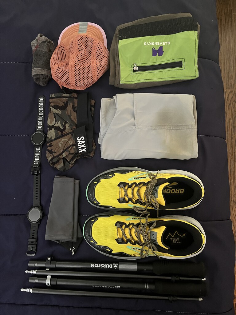 The following breakdown numbers are from my watch. They do not represent the actual totals from the trail. They include wrong turns, fetching water etc. The watch is also not always 100% accurate.