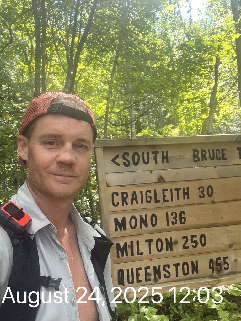 Backstory: I completed the Bruce unsupported back in 2022 and felt pretty happy with it at the time. The record got broken in 2024. I didn't think right away that I would attempt to go get it back. In fact, I had full intentions on working on this other project. In late 2024 I was out scouting this other trail out and part way through I just kept thinking about the Bruce. It was calling me. By the end of that adventure it was clear, I wanted another shot at it. I then trained all winter long and planned on starting in Queenston in May 2025. My parents were going to take me to the start, just like the last time. 2 days prior to them coming and picking me up, I was just finishing up my packing and received a call from my brother. My dad had a heart attack and wasn't going to make it. What a shocker it was. He was 73 but seemed in great health. He had swam, biked and hiked that morning. He had volunteered on a farm the day prior and was about to volunteer that night at a church function. I had 2 weeks off work for the trail and I obviously used that time to go home, be with family and help out with everything. It was really tough. I came back home and did a 2 day adventure since a 2 week one wasn't in the cards. I felt like I still needed a release after a winter of training. I then signed up for a backyard ultra. I always wanted to try one. Shortly after is when I thought I could give the Bruce a try in mid August. Maybe that time of year wouldn't work out for me. Would I have enough water? Would the heat get to me? I felt like I had to try though. I wanted to finish what I was supposed to do earlier this year. I'm very glad I went for it!