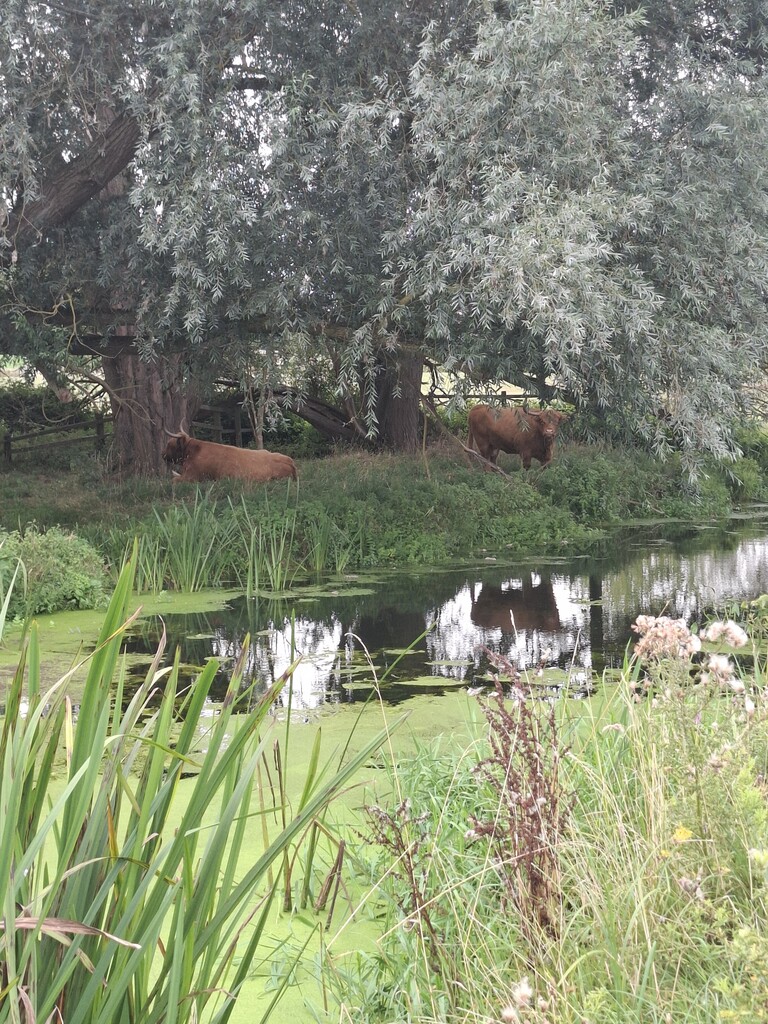 Saw a lot of wildlife, some sheep, and horses. Stopped to say 'hi' to a lot of dogs, especially closer to Ipswich. Saw a couple of Highland cows across the river after Claydon, and had to dodge some other cows in the field after Claydon.