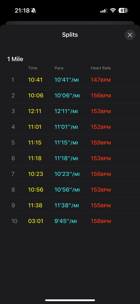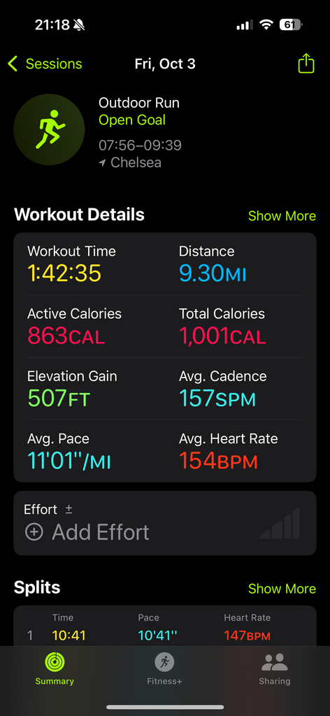Completed this run start to finish with my running partner Betsy. We both carried our own hydration backpacks with snacks/electrolytes. Had to hop out of the way a few times to yield to bikers but overall had a smooth and fun time!