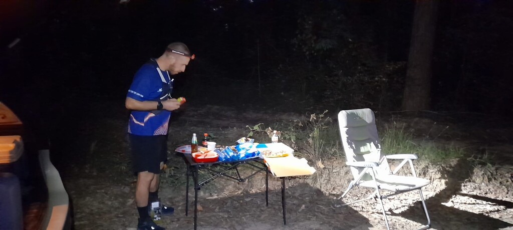 Once again got through my fluids before hitting the checkpoint, I was taking on close to 1L/hr but still didn't feel great, I think I'd half cooked myself on the hills in the heat. Body felt really warm coming into the 3rd checkpoint near Strickland, ended up sitting down for 20mins here as I was feeling a bit queasy. I was trying to change my mindset to stop focusing on the 24hr goal and pull it back a bit so I didn't throw the entire run. Wise words from Dad when leaving the checkpoint - "Respect the distance".
