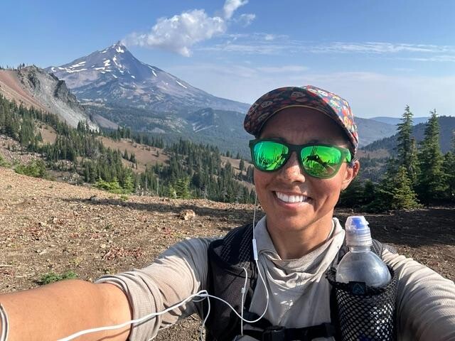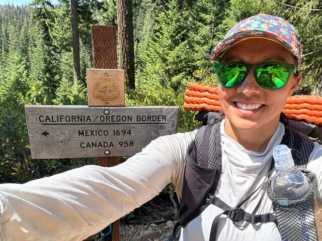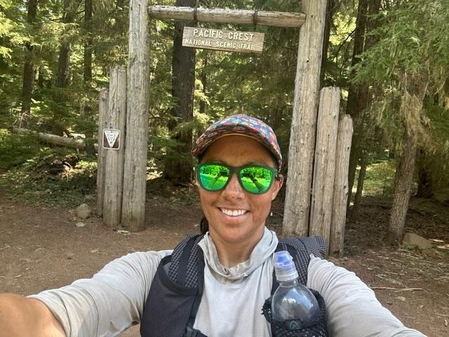 I set my alarm every day for 2:30 am with the intention of setting off no later than 3:30 am. I started my unsupported FKT attempt at the California/Oregon border on August 21st at 3:09 am and completed the trail on August 29th at 10:52/10:55 pm at the Bridge of the Gods. The map on my FarOut guide ended at the middle of the bridge at 10:52 am. I stopped my watch at the Bridge of the Gods sign at 10:55 pm. I attacked day one with the intention of getting the most mileage on fresh legs. I was able to hike 60 miles on day 1. From there, it would set my pace for the duration of my hike with a goal of hiking 50 miles every day until I reached the end. As the days progressed and blisters began to form, reaching my daily mileage goal became more and more difficult. This resulted in some really late-night treks with very little sleep. There was only one day I was unable to meet my 50-mile goal, but I was thankful I had banked a few extra miles here and there throughout my hike to make up for it. The trail in itself was a challenge with its long water carries. Hiking this late in the season meant that seasonal streams were dried up. Something I didn’t anticipate. Having to sit and filter rather than walk and filter really slowed my progress. Especially when I had to filter from a murky pond, this clogged my filter. Additionally, on August 26, Oregon had a massive heat wave roll through with temperatures reaching well over 100 degrees. With having to hike through numerous burn fields, I felt every bit of this wave. This was my 3rd time hiking through Oregon and my first time hiking in the Northbound direction. Out of all 3 times, this was my first time seeing mountain goats and elk in Oregon. I didn’t see a single bear until my descent into the Bridge of the Gods. From there, I would see one and hear two bolt down the mountain during my nightly descent. The descent into the Bridge of the Gods was brutal. I could see the river but knew it would take me a few hours to reach it with my blistered, achy feet. I was grateful to have a nice, easy road walk to the finish.