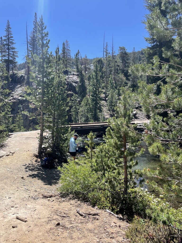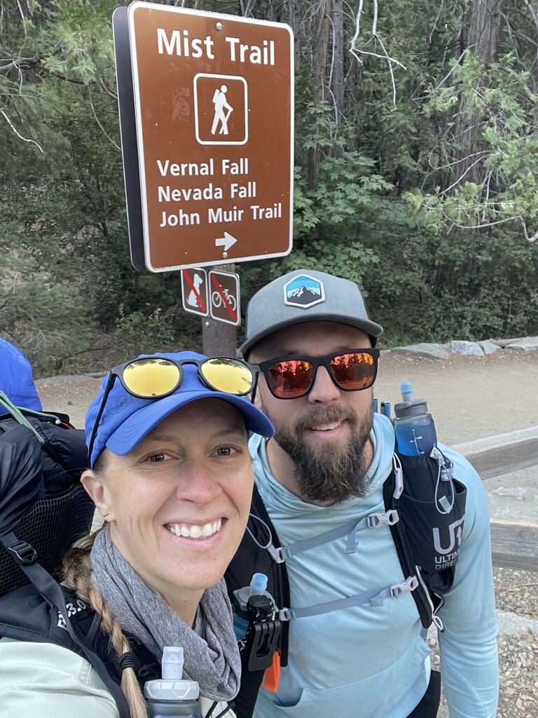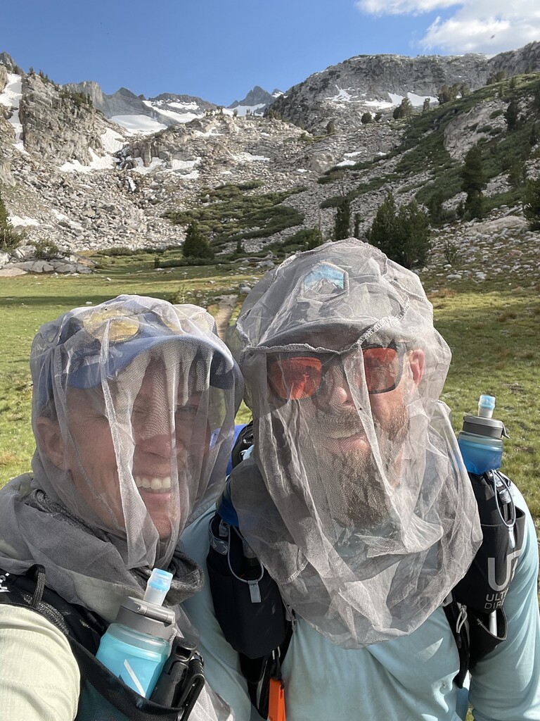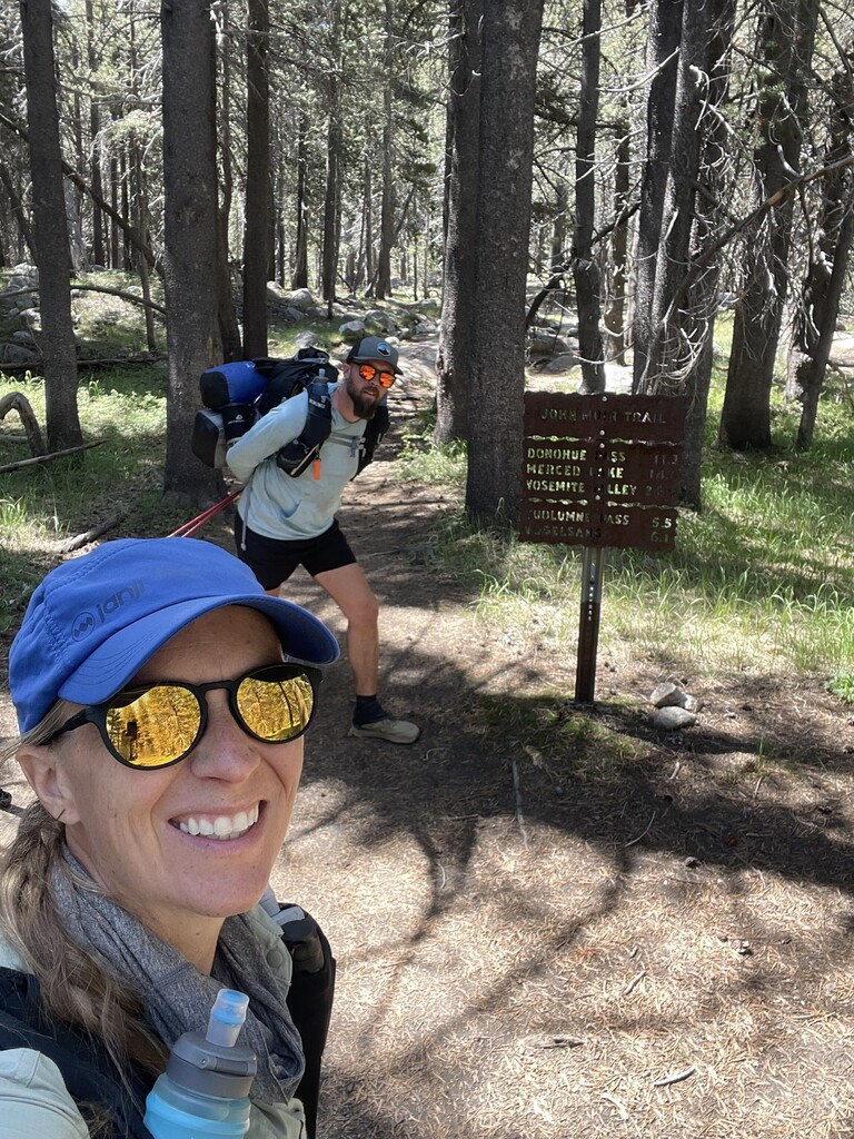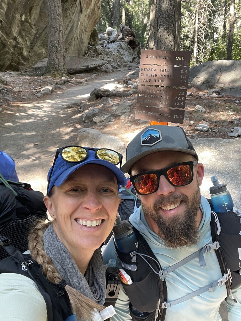 We also followed closely the FKT site's advice and instructions as it relates to not going off the official route particularly three main areas of noted confusion: Red’s Meadow, Tuolumne Meadows, and Yosemite Valley. We carried ALL supplies including food from start to finish. We didn't weigh our packs but estimated they were roughly 30-35lbs each. We used the MANY freshwater crossings to refill filtered water bottles. We received NO support in this attempt. This was a very challenging adventure-- much more challenging than we anticipated, especially with the heavy packs!