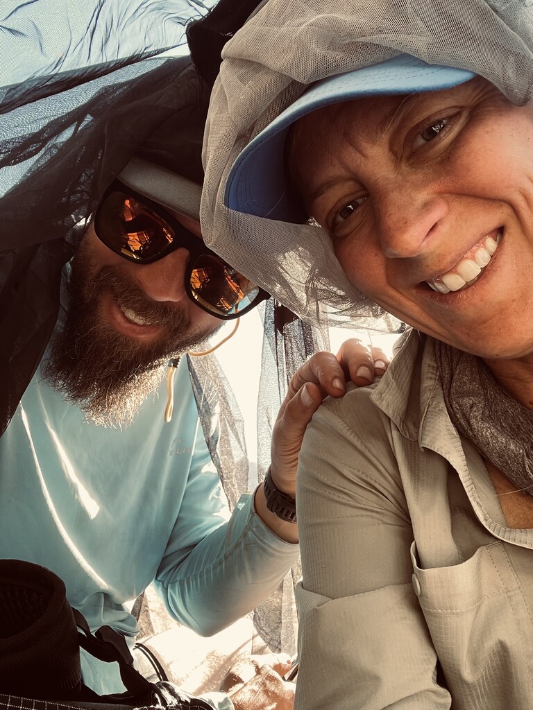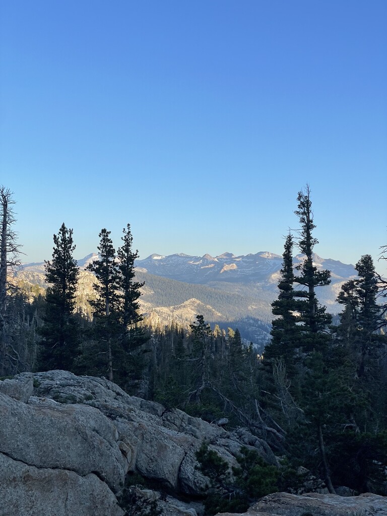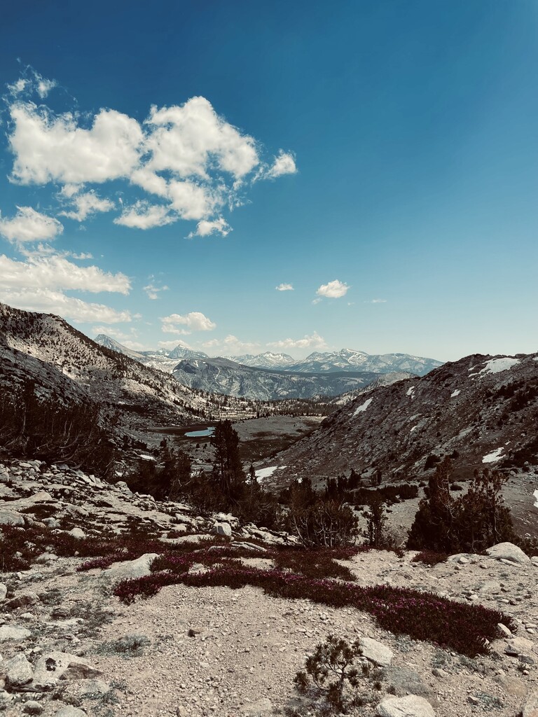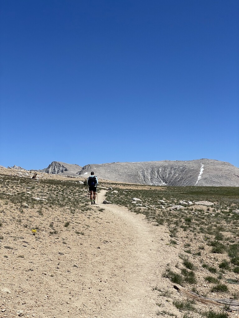 We started Day 2 (June 28th) at roughly 6:30AM PT. Another great section of the trail that went through Tuolumne Meadows, through Lyell Canyon, and over Donohue Pass. Took careful note of the warning to not go off route near Tuolumne Meadows. Beautiful view of the valley below towards the top of Donohue Pass. There were an INSANE number of mosquitoes. Thank goodness we brought mosquito face nets, and we were super clever in bringing a larger mosquito net that we could fully huddle under during lunch breaks and at night. There was some snow towards the top of Donohue Pass but made it to the top with no issues! We setup a small camp just down over from the pass at about mile 37. My watch was tracking longer mileage likely because of the pinging while sleeping the previous night but based on the physical map that's about where we think we landed. We were worried about our slow progress in the first two days as our original plan was to have reached 50-60 miles by end of day 2, but we stayed optimistic and focused on one mile and one day at a time, knowing our packs would become lighter over time making it easier to gain more ground each day.