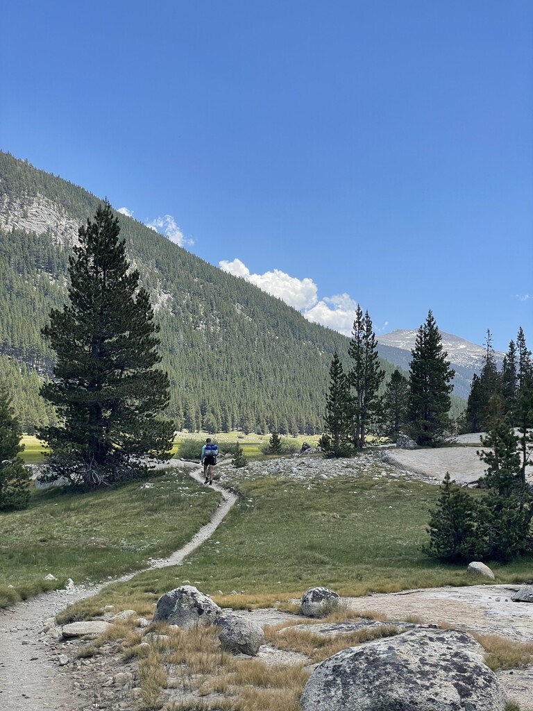 We started at Yosemite Valley (Happy Isle Trail head) on Day 1 (June 27th) at 8:25AM PT. This was a beautiful section of the course including Nevada Falls. We made sure to follow the correct route re: Mist Trail warning on the FKT site. We were issued the permit to do Half Dome but chose not to add this to our route. The climb out of the valley was tough, especially with full packs so we did not make as much progress as we hoped on day 1. We setup a small camp end of day a little past 8:00PM PT which we rested longer than we probably should have until the next morning.