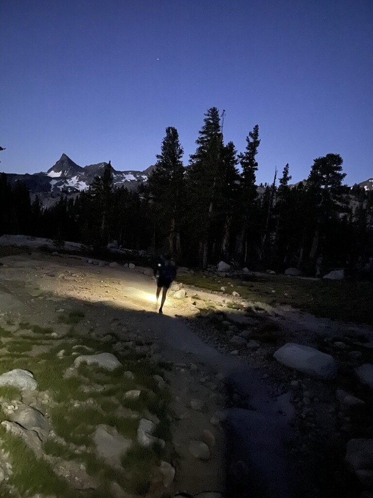 We started Day 3 (June 29th) at roughly 4:30AM PT. The early start felt good and set us up for a great day passing through several lakes including the stunning Thousand Island Lake. We also made it through Devil's Postpile and Reds Meadow. We were careful to follow the 'don't go off route instructions' as indicated on the FKT site. We took a short day-time rest by the river which luckily had NO mosquitos-- it was a miracle! Felt good to get washed up before heading into the night. We continued on for only a few more hours. As it got dark, I started to deal with sleep deprivation which was hugely disappointing. I had to sleep so we stopped sooner than we expected but planned to make an earlier start to make up for the missed late evening miles.