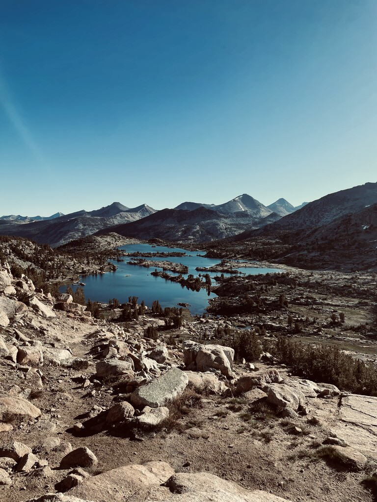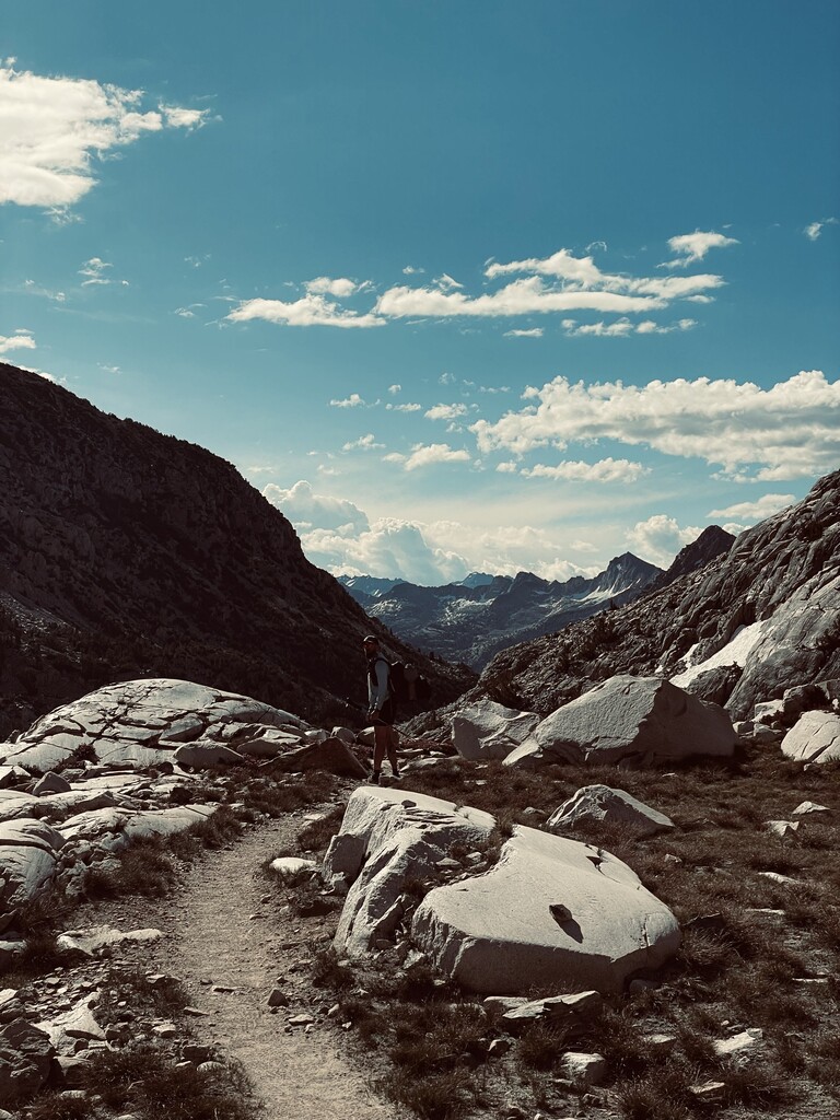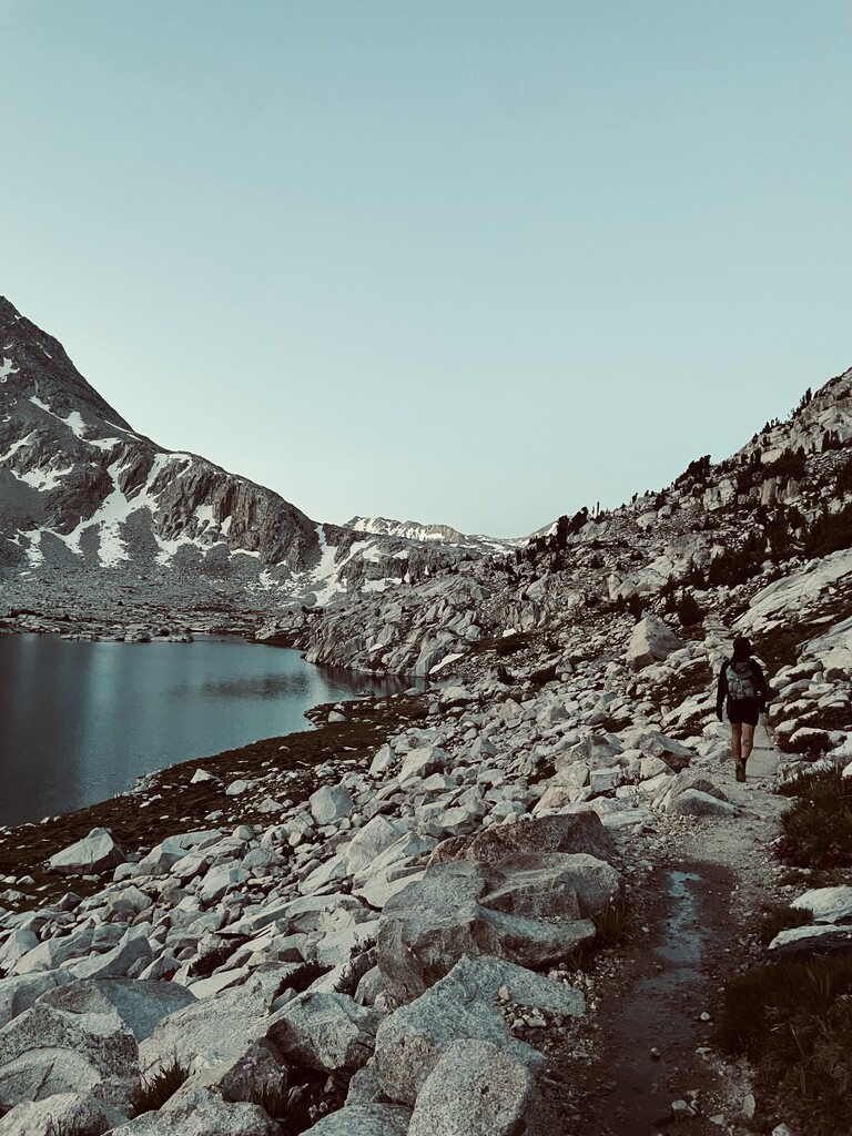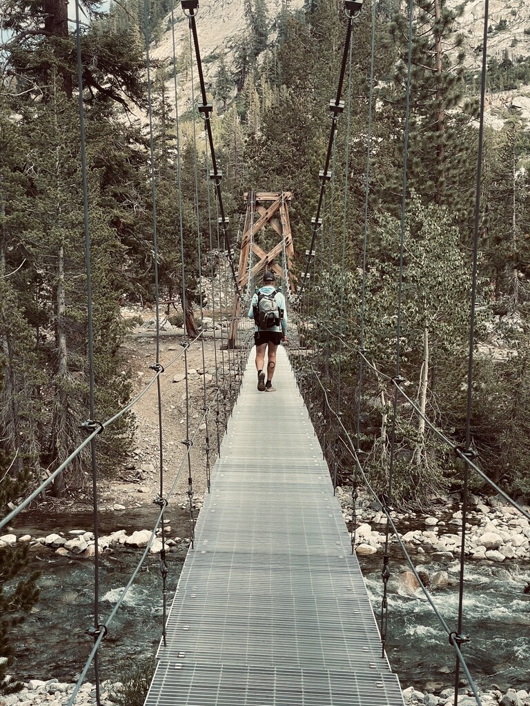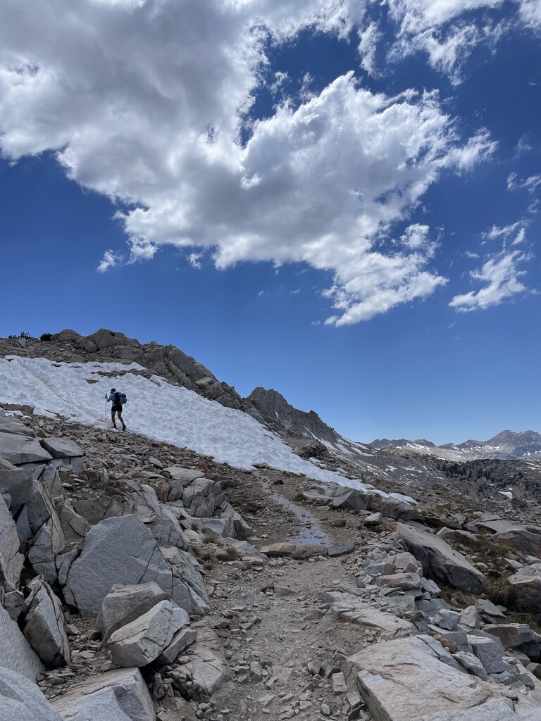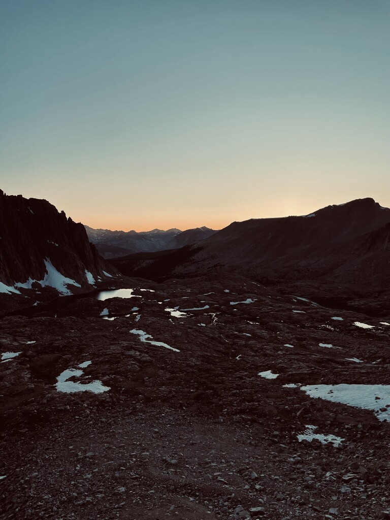 After waiting out the storm and trying to get clothes to dry we set off early morning to get over Mather Pass. It was very exposed further validated the right decision to wait until the storm passed before pushing over the pass. We would have been completed exposed and in a dangerous situation with hypothermia. We made it over Mather Pass and later over Pinochot Pass which was a wonderful section of the trail. We crossed the WOBBLY suspension bridge and continued on to make the push over Glen Pass. The lake area just below was beautiful and somewhere we’d like to spend more time at in the future. The sun set before we made the pass which left us traversing higher, exposed altitudes in the dark. There were snow patches which made the traverse challenging and not the safest in some areas. We made it over the pass and made the decision to setup camp just below the pass so we could recover, warm up, and prepare for a huge day tomorrow.