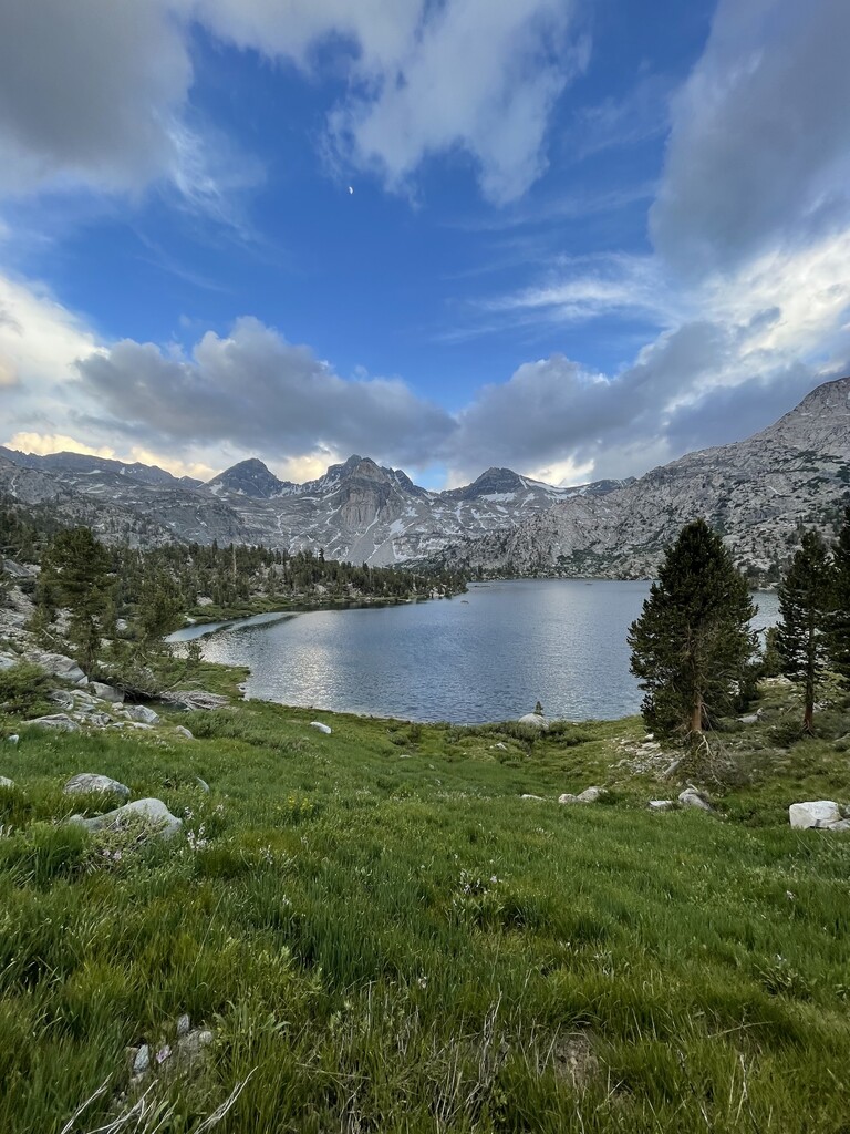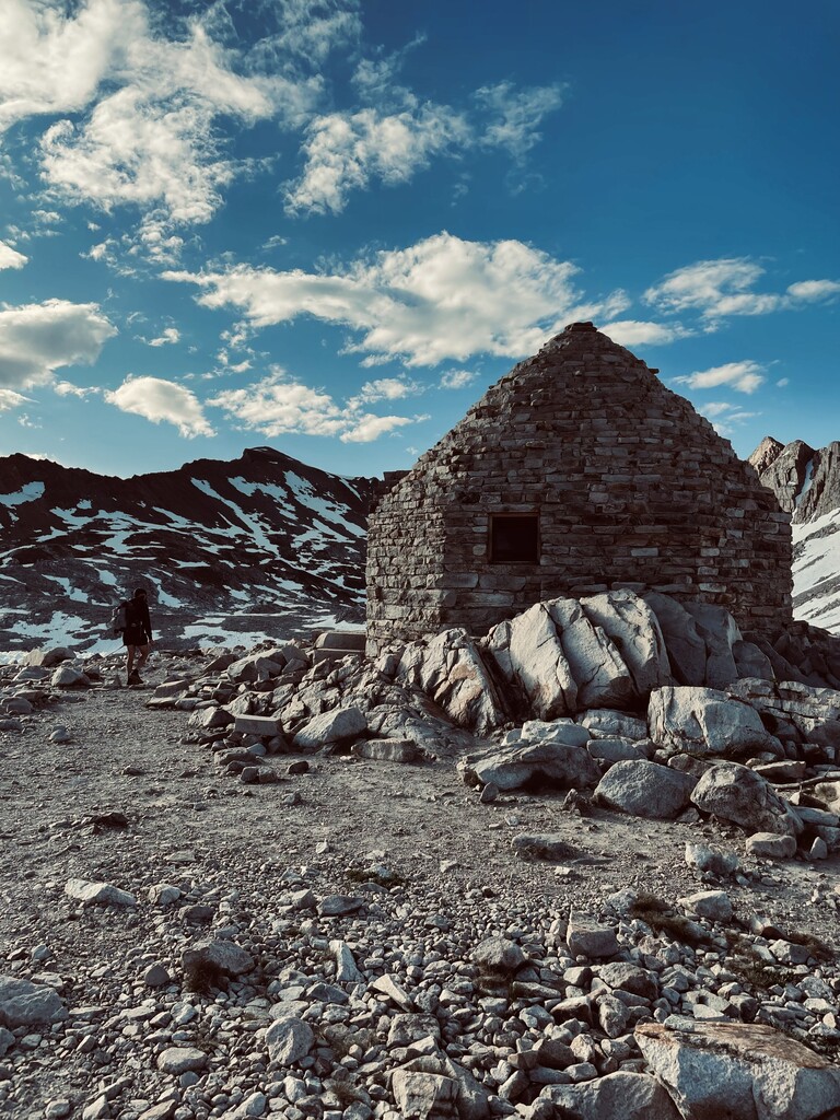 We started out early morning to make it over Muir Pass. There was a really cool shelter at the top. The snow patches made the trail challenging to navigate but we made it through the pass. The ascent and descent was by far our favorite of the entire trip. The area was absolutely gorgeous with lush, alpine meadows. It was out of a picture book. Later in the day after we came down Muir Pass a storm began to build which had us a little nervous since we were pushing to have a 40-mile day. As we began our accent towards Mather Pass the storm began to worsen with lightning, thunder, and cold rain. Unfortunately, we had to make the decision to shelter just before Palisades Lake which cut our day short by 20 miles. We were super disheartened by this thinking our goal to summit Mt. Whitney by midnight on July 4th may no longer be possible. We made the right decision and got a plan together for the following day.