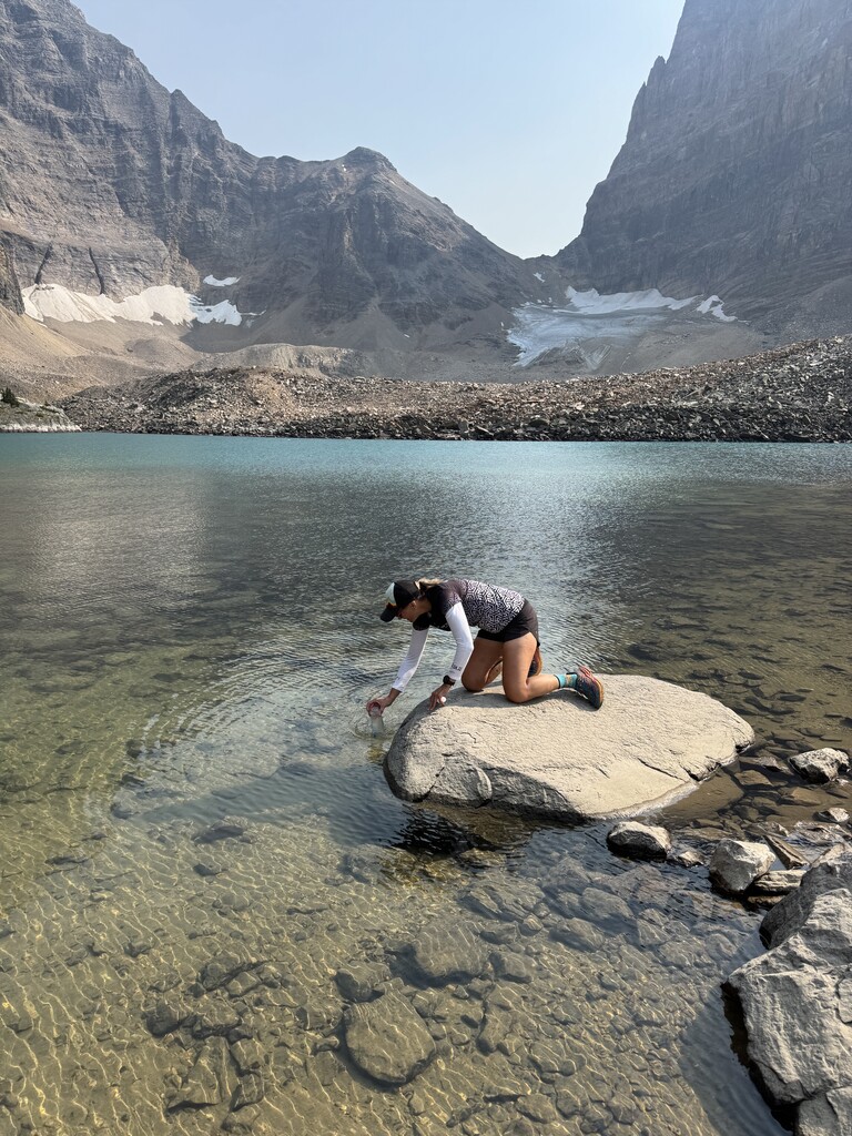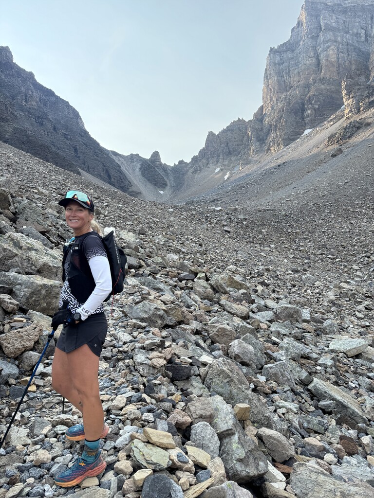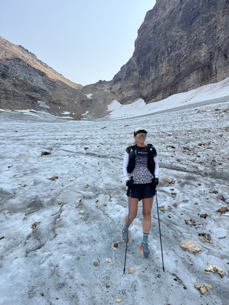 Fuel used was Skratch, chocolate bars, and some fruit bars, all self-carried. Three soft water flasks, each with one containing a water filter, allowed us to refill water en route from open sources. Route finding on 90% was easy on a well-maintained trail, with the route's crux being Wenkchemna Pass to Opabin Lake. The majority had no visible trail in this area. The glacier passages on each side of Opabin Pass were fine. Still, they would be recommended only in good weather and late season to ensure the snow pack had dissipated to expose any risk of crevasse.