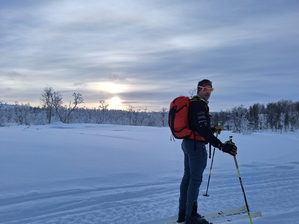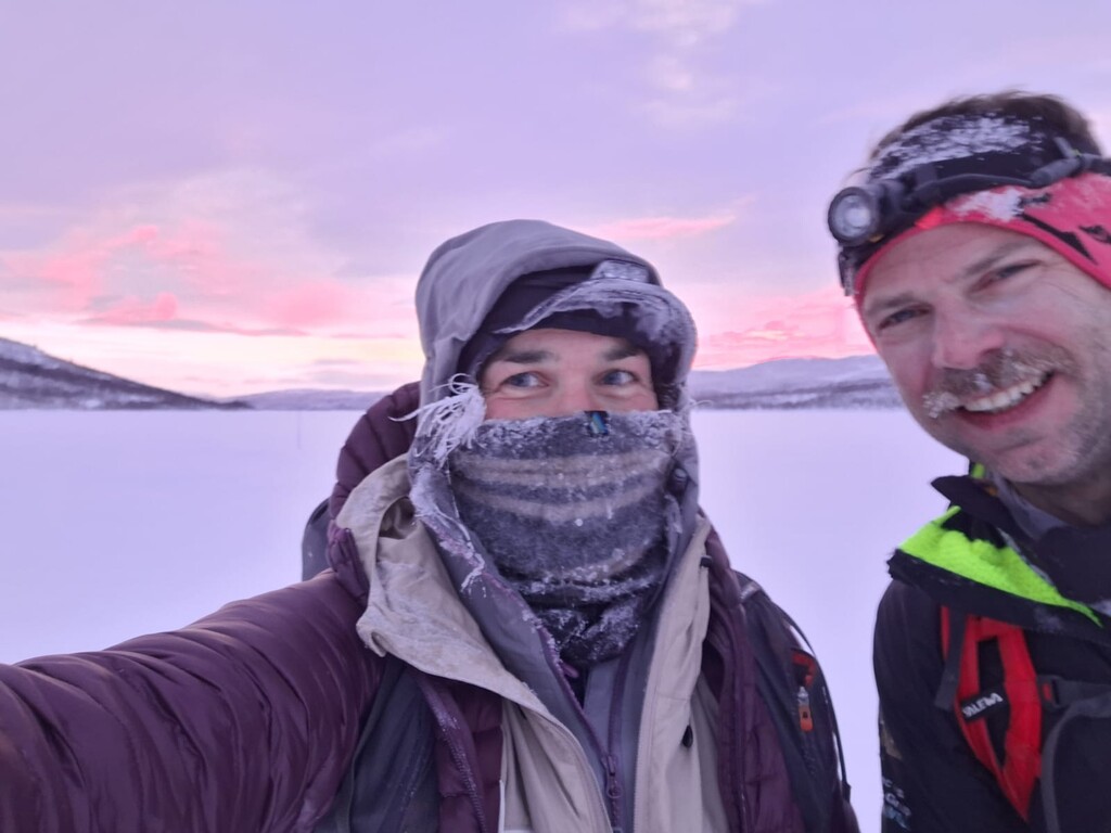 We left Hemavan on the morning of Saturday 31 Jan, in good weather conditions, on a well-marked route. The route included a mixture of snowmobile tracks and virgin snow, encompassing woodland, valleys, plateau and mountain tops as well as frozen lakes which were marked as part of the winter route as deviations from the summer. We planned three meetings with our support crew throughout the event; the first at Joesjö, around 30km in, the second at Gränssjö, after a total of 86km, where we slept for 4 hours, ate, and replenished water and food. The third stop was in Klimpfjäll, after a total of roughly 150km, where we again replenished food and water, slept for another 4 hours, and carried on to the finish at Borgafjäll.