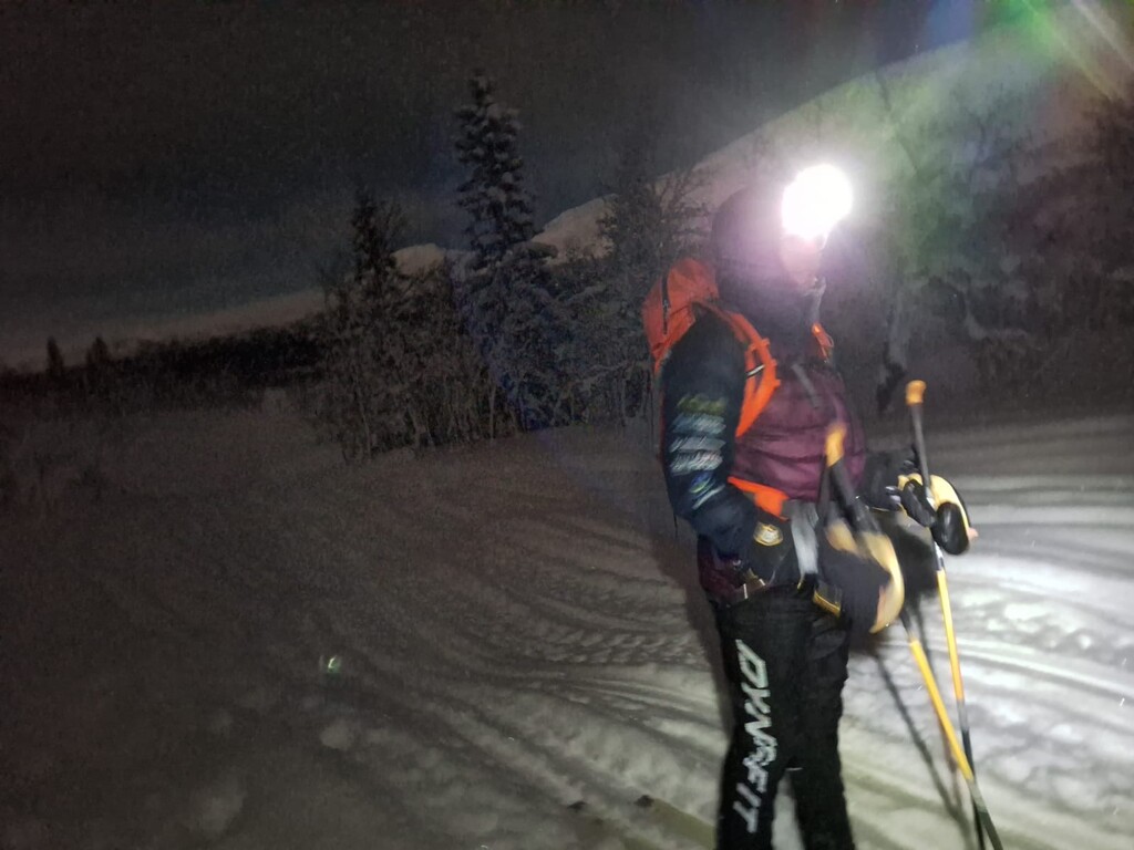 We believe that this is the first time that this has been done continuously, on the basis that we couldn't find any record of it having been completed before. We did this as a mixed team of a female athlete and a male para-athlete. We hiked / skied the winter route of the Lapplandsleden trail from Saturday 31 Jan to the morning of Tuesday 3 Feb. Totally understanding that fastestknowntime.com looks at running and hiking routes, we're submitting this on the basis (I checked with Allison Mercer first, and she said to submit as an alternative route) that this would be considered a Winter route, and that touring skis facilitate the means of hiking the route, given that it is a marked but ungroomed backcountry route, as opposed to a pisted track or the like. We'd note that running this without skis in the Winter would be completely impossible due to the amount of snow on the ground. We'd love for you to consider this as an FKT on this basis, as otherwise there isn't anywhere else that this would be recorded or preserved, and it's a fantastic winter route which we feel would be great for others to try! Report in full below: