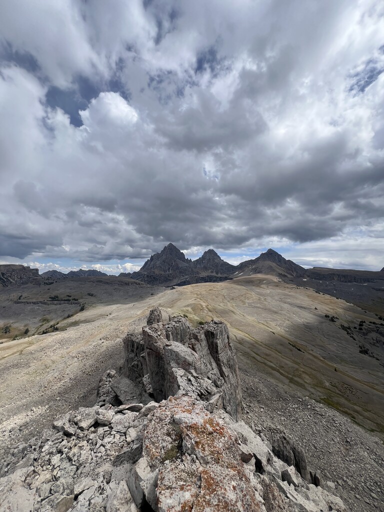 As I reached the summit block, I could see rain falling in the mountains to the south, which motivated me to keep moving quickly. Not long after I descended from the peak, cooler air rolled in along with denser cloud cover and a light drizzle — excellent timing! Running in the cool, misty conditions felt incredible compared to the exposed sun earlier in the day.