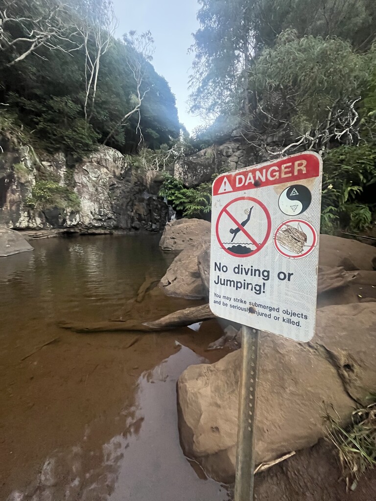 Started next to the wooden sign, turned around at the No Diving sign (photos) after touching the pool of water.