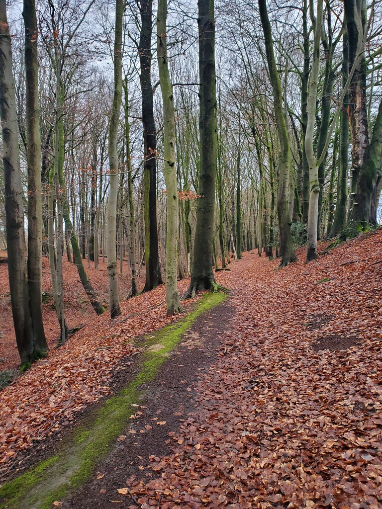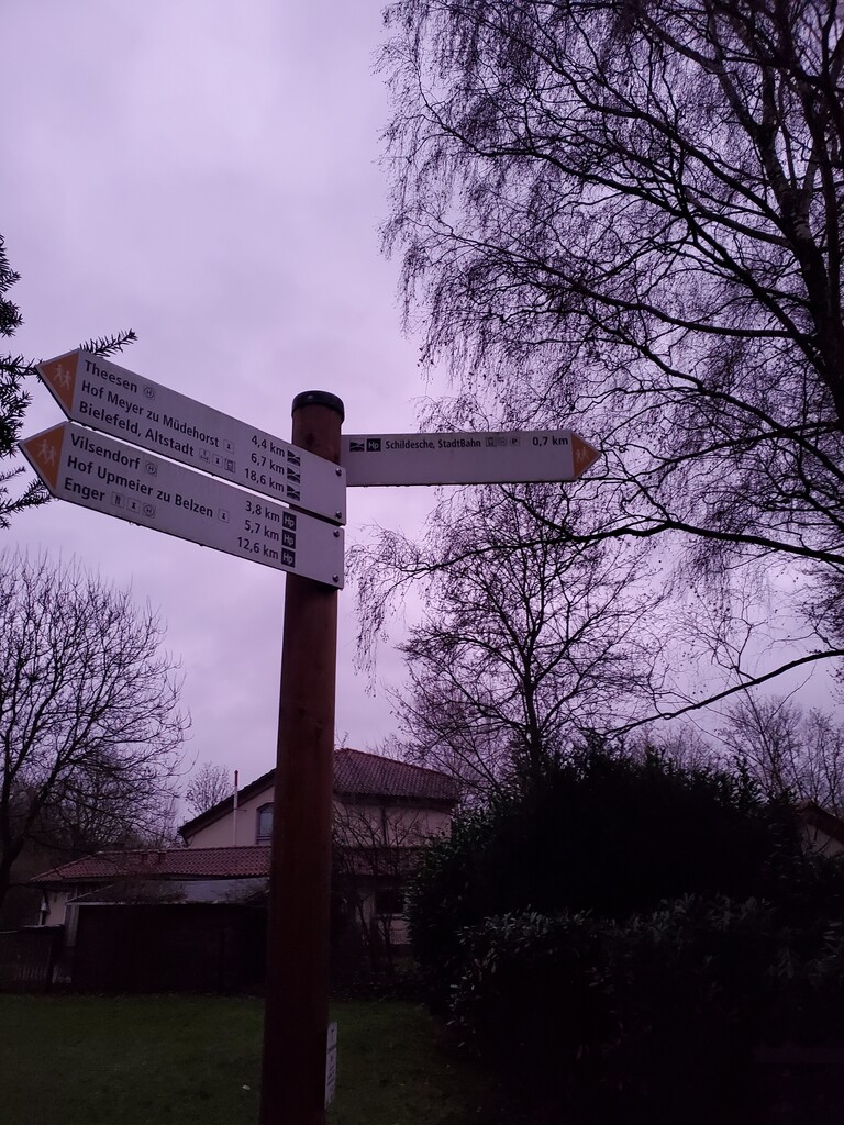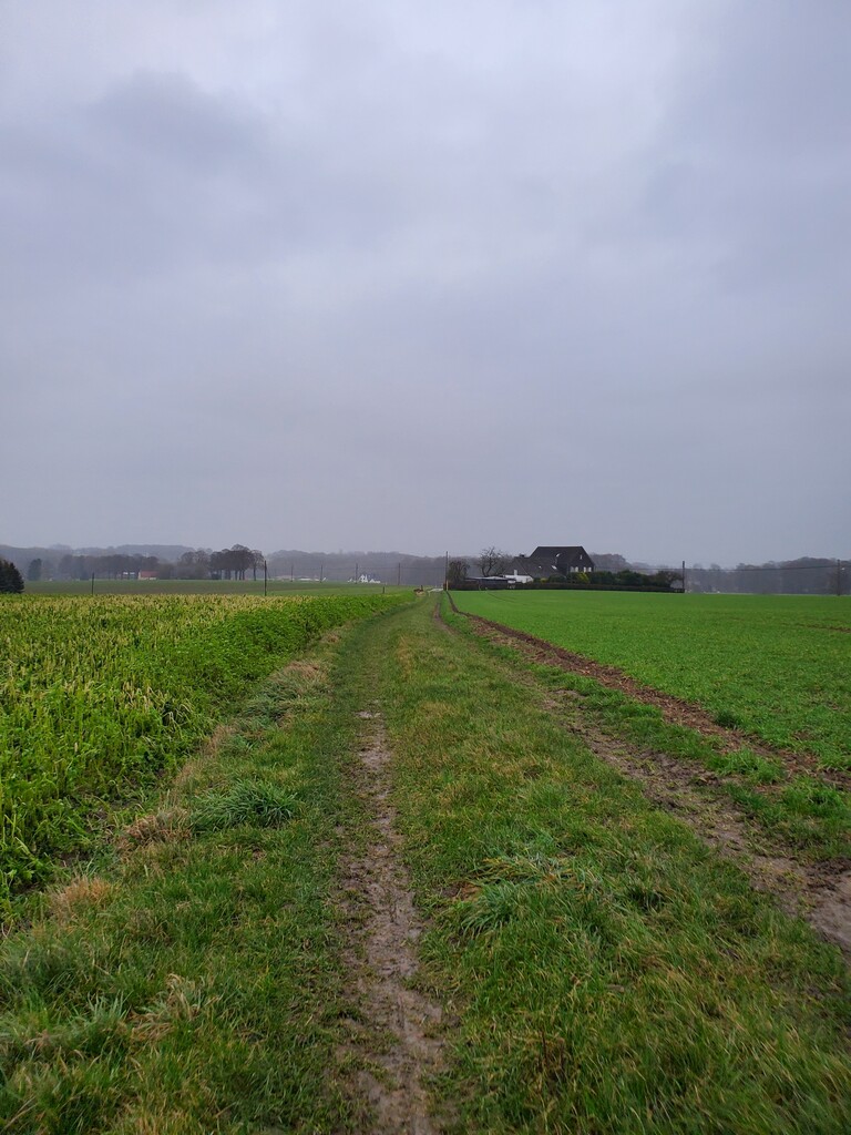 Extraordinarily muddy and wet and rainy, and got dark very quickly! Typical for the time of year. Lovely scenery from forests to fields to the bus station at the end of the line.