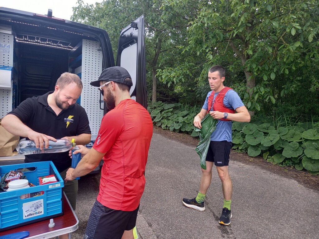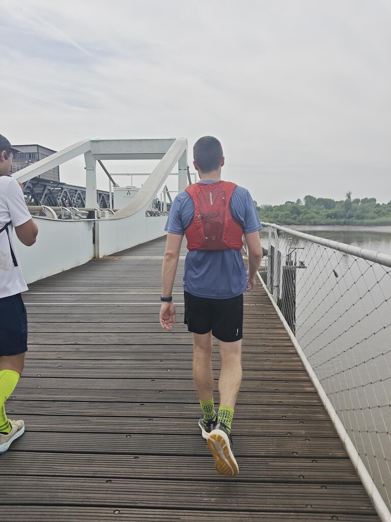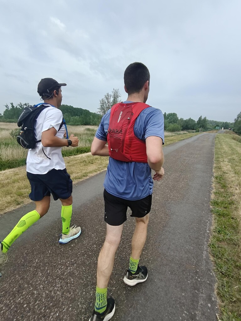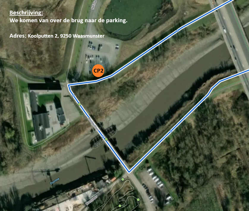 De crew bestond uit Rens en Sara, elke 15 km was er bevoorrading voorzien met allerlei lekkers. Onze eerste bevoorrading was op een parking van een restaurant ’t Schuurken net naast het jaagpad, we waren er iets later dan verwacht maar bleven minder lang plakken waardoor we mooi op schema liepen bij het verlaten van het eerste CP, op naar Waasmunster. De route neemt je mee langs prachtige vergezichten en doorheen enkele leuke dorpen naast de Schelde en de Durme. Na een goede 30Km komen we aan op ons 2de CP, we lopen over de Mirabrug en treffen onze crew op de parking van de Koolputten. We zitten mooi op schema maar beslis om de voorziene pauze (30min) niet te nemen en na de bevoorrading meteen verder te lopen.