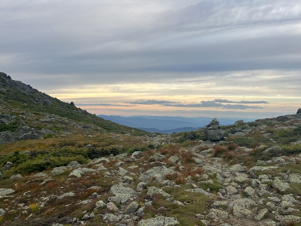 Was gifted with a stellar day to walk, hike, run, crawl, climb, slide, and fall my way up and down a bunch of absolutely stunning but unforgivingly gnarly terrain in the Presidentials. Definitely did not totally comprehend what I had gotten myself into until the summit of Washington, but maybe that was for the best, and I was somehow was still able to be in complete awe of the beauty of these mountains by the time I was facing Huntington Ravine, which I counted as a win. Getting up Madison Gulf felt like one of the longest trails of my life (turns out having to drag yourself straight uphill on all fours while already exhausted, dehydrated, and probably a bit under-fueled is pretty demoralizing), but then I was rewarded with a stunner of a sunset while heading down Watson Path.