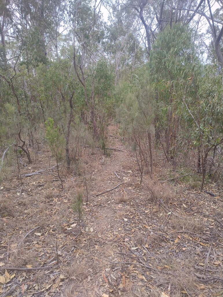 The most challenging part came at the turnoff, where we left the river and began climbing out via a spur. There’s no obvious landmark marking the start of this ascent, so we relied on the GPX, following a gully before pushing through some light bush-bashing onto the spur itself. As we climbed, the route gradually became clearer, developing from indistinct ground into a faint footpad. The climb started brutally steep, eased halfway with a flatter section, and then kicked up sharply again near the top before finally bringing us back to the junction