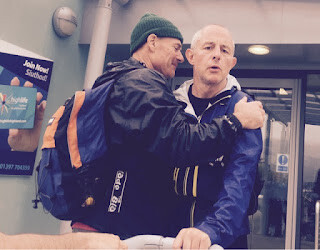 I get a beer with Ollie – he is knackered as well having kept me going with his chat and positivity for the past 45 miles / 22 hours. We sit there and I have a moment or 2 when the mental and physical release of being finished goes over me in waves. Out of the corner of my eye I see one of the people from the Leisure Centre wiping my handprints off the door, that will be that then. Footsteps wash away, handprints the same, but memories and achievements like dreams are eternal.