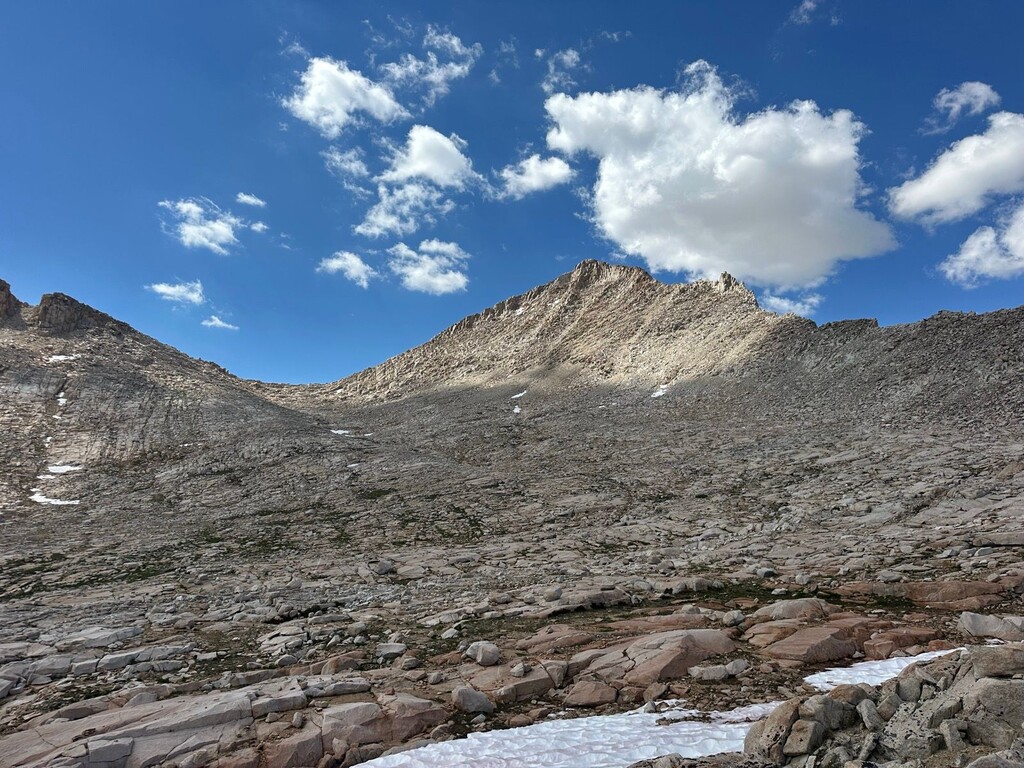 After Italy Pass, it is a sandy, slippery off-trail scramble to get to the summit. Through some trial-and-error, I found that it was easiest to climb the scree field on the southwest face. If you look closely at my tracks, you can see that I started up the ridgeline and then got cliffed out and cut horizontally across the face instead. Others might prefer the ridgeline for the sturdier footing, but it was just a little too cliffy for my preferences.