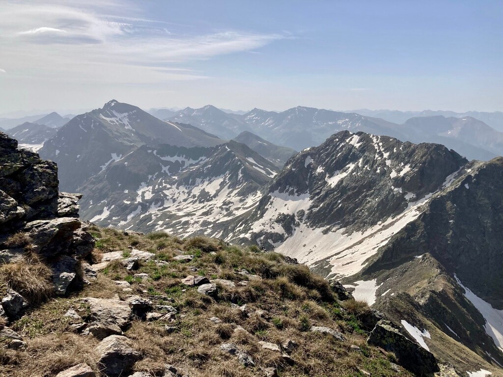 Apart from being challenging, the route was straightforward enough for peaks 13456, but #2 Tristaina was brutal. It had the worst wind on the thin path, the worst path markings and actual availability of a route down (really? someone thought a rock face and scree counted as a trail?), and by far the most snow to re-route around.