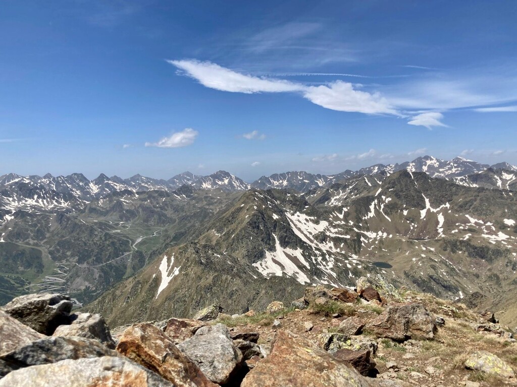 Andorra in general has technical ascents/descents and not a lot of flats. This route was mostly a hike, with some scrambling sections and one longer runnable area between the first 3 and last 3 peaks.
