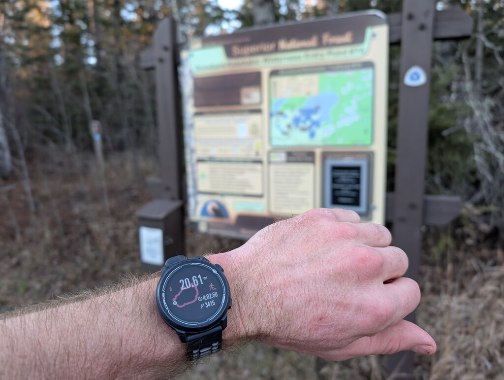 Ice was forming in the protected waters along the route and the winds were cold and strong out of the northwest, whipping up whitecaps on Snowbank. Not a good day to be paddling on the water, but it was almost perfect conditions on the trail with tread visibility the best I'd experienced this autumn. As with my October FKT of the Snowbank-Disappointment Loop, I saw no people but plenty of grouse.