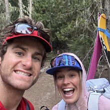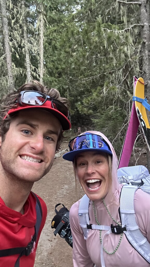 We each carried 1.5 liters. I had Carbo pro + LMNT in my bottles plus a maurten gel each time we stopped (maybe 5-6 total). Once I tried a snickers but that didn't sit well. I've been "so serious about not being serious about nutrition in the mountains"- usually picking PB&J and candy over "tech food." I treated this event more like a bike race and I think it helped me to just eat easy fancy carbs.