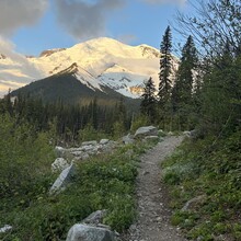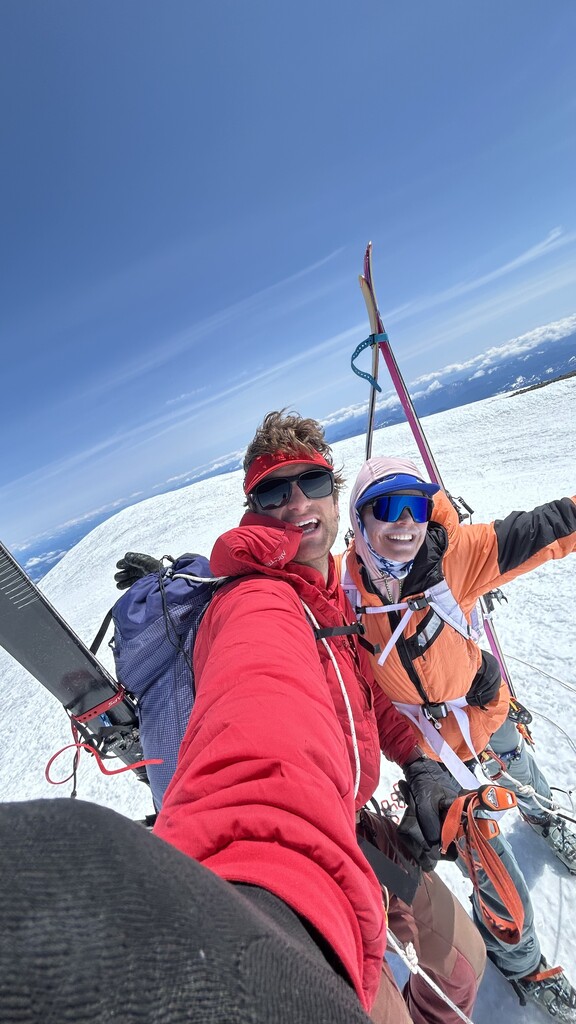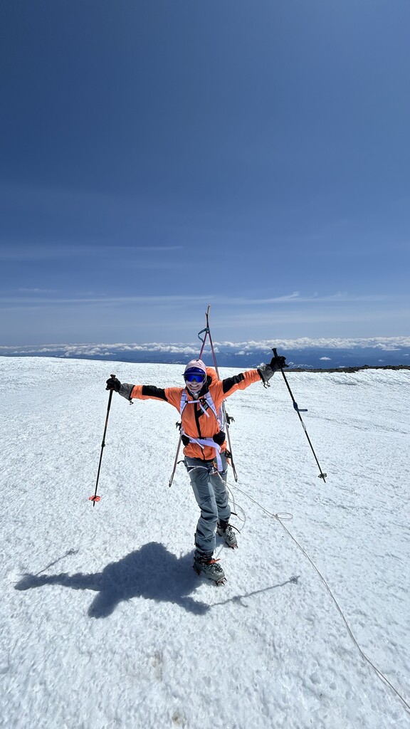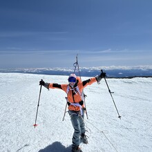 Justin and I met at the White River Trailhead around 5a and got rolling by 5:30a. We cruised up 2.7 miles, dropped our runners and switched to skis and skins. We skinned up the inner glacier to Camp Sherman & roped up, and then continued up the hill. Switched to ski crampons and pretty quickly to boot crampons. Hit the summit before noon, ripped skins and got out of there! Nothing like that quad burn on firm snow up top!