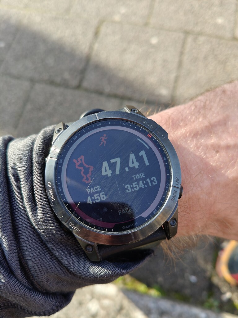 The weather was good, sunny and dry. The route was pretty straightforward and easy to navigate. Road surfaces were mainly asphalt and gravel with a couple of forest trails near the end. The second part through the vinyards was the most beautiful with some great views. I brought about 1.5L of water and 6 gels so I didn't have to stop to resupply. I made my goal of running under 4 hours. The course is pretty fast, so I expect that a serious road runner can take off another 30 minutes easily. Thanks Daniel Hernes for the challenge!
